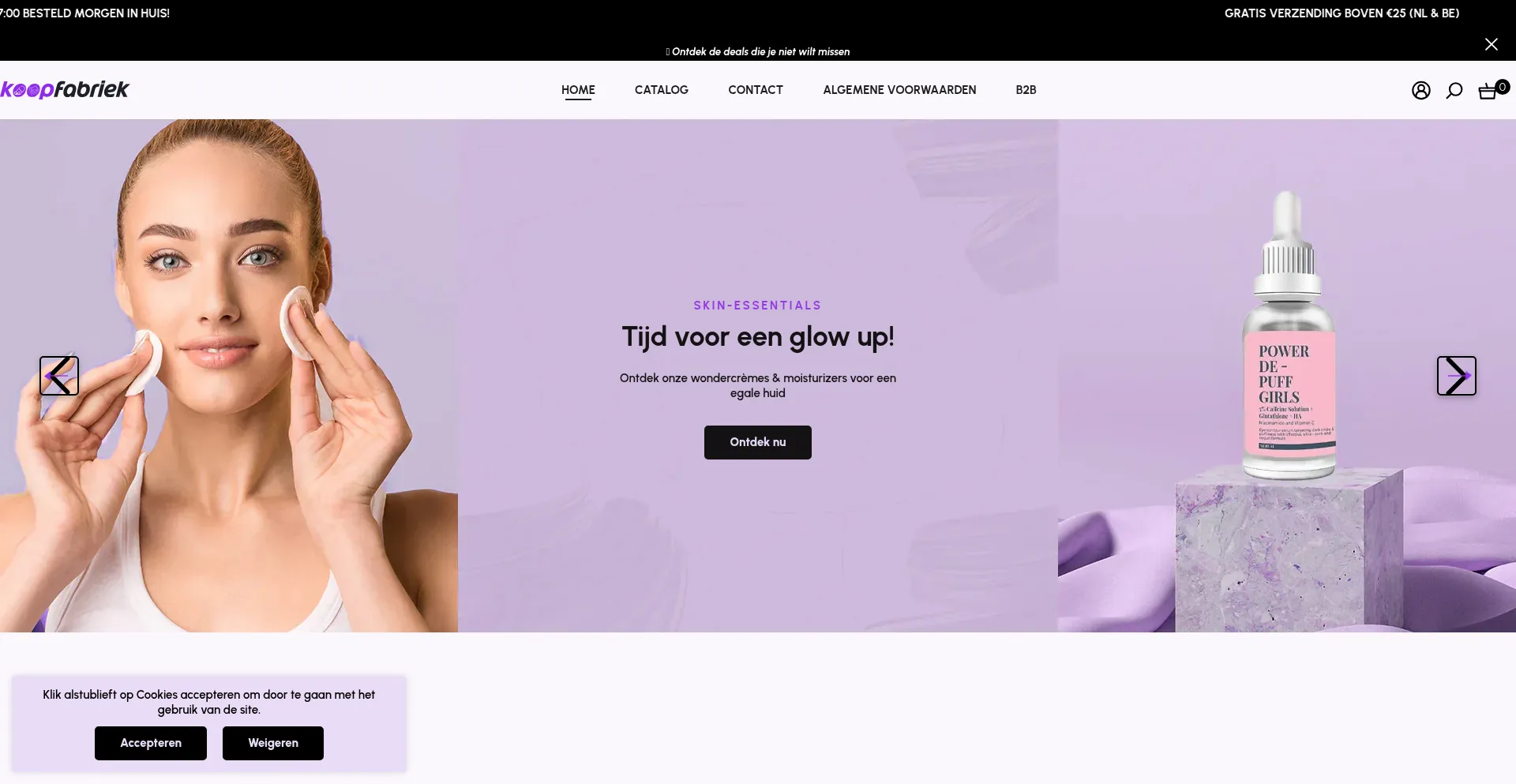 Analysis indicates that koopfabriek.com operates as an e-commerce platform facilitating online transactions for goods or services. The website implements shopping cart functionality, payment processing systems, and product catalog features typical of commercial retail operations.