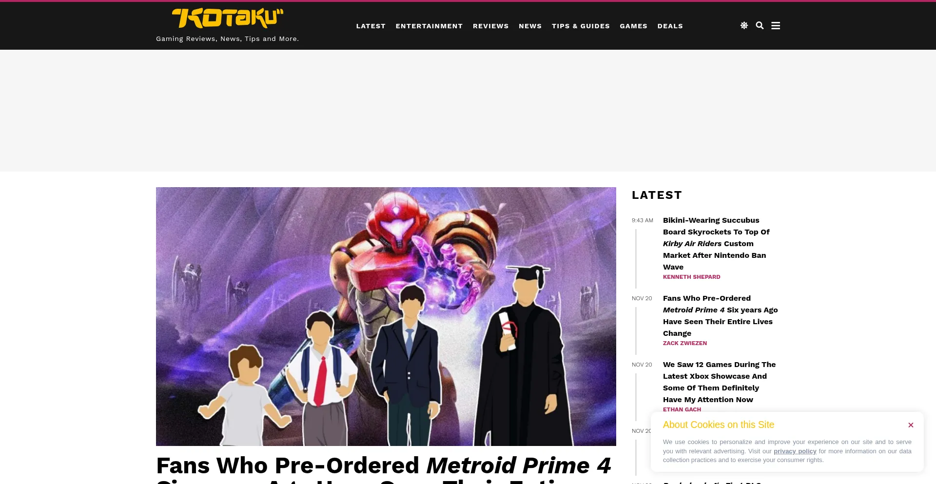 The website implements cookie consent mechanisms in compliance with privacy regulations such as GDPR or CCPA. This demonstrates that kotaku.com adheres to data protection standards and provides users with control over personal data collection practices.
