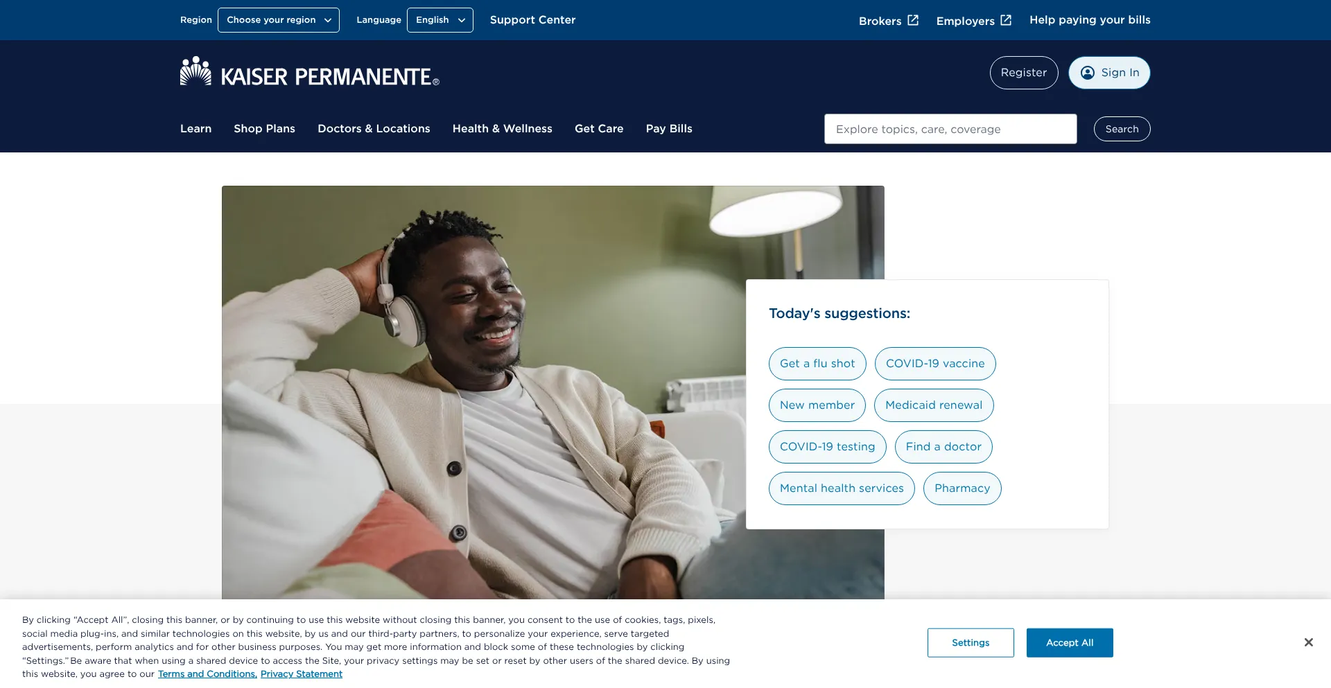 The website implements cookie consent mechanisms in compliance with privacy regulations such as GDPR or CCPA. This demonstrates that kp.org adheres to data protection standards and provides users with control over personal data collection practices.