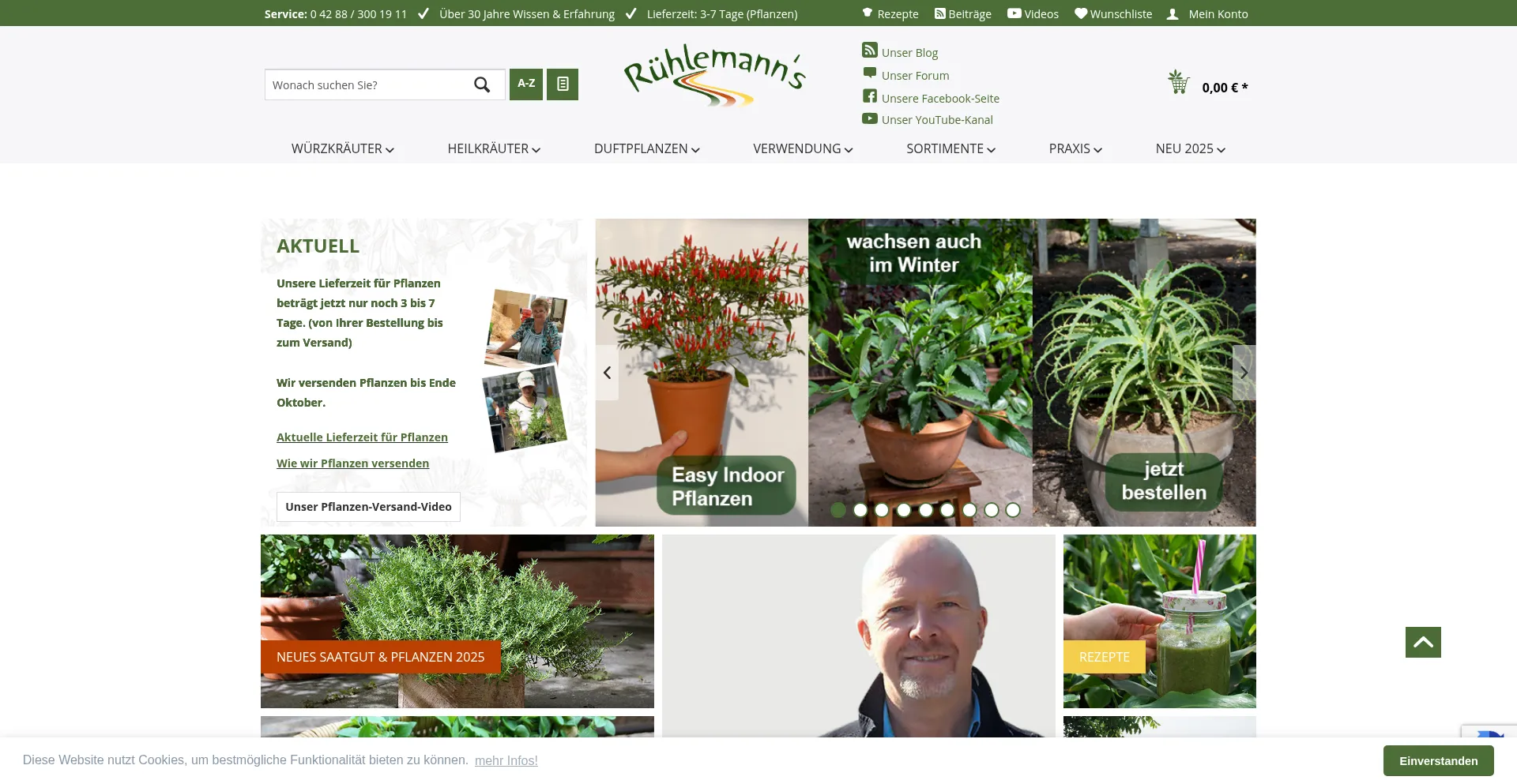 Kräuter, Pflanzen und Saatgut direkt aus der Gärtnerei. Kaufen Sie jetzt ein für Ihren Kräutergarten in unserer Versandgärtnerei.