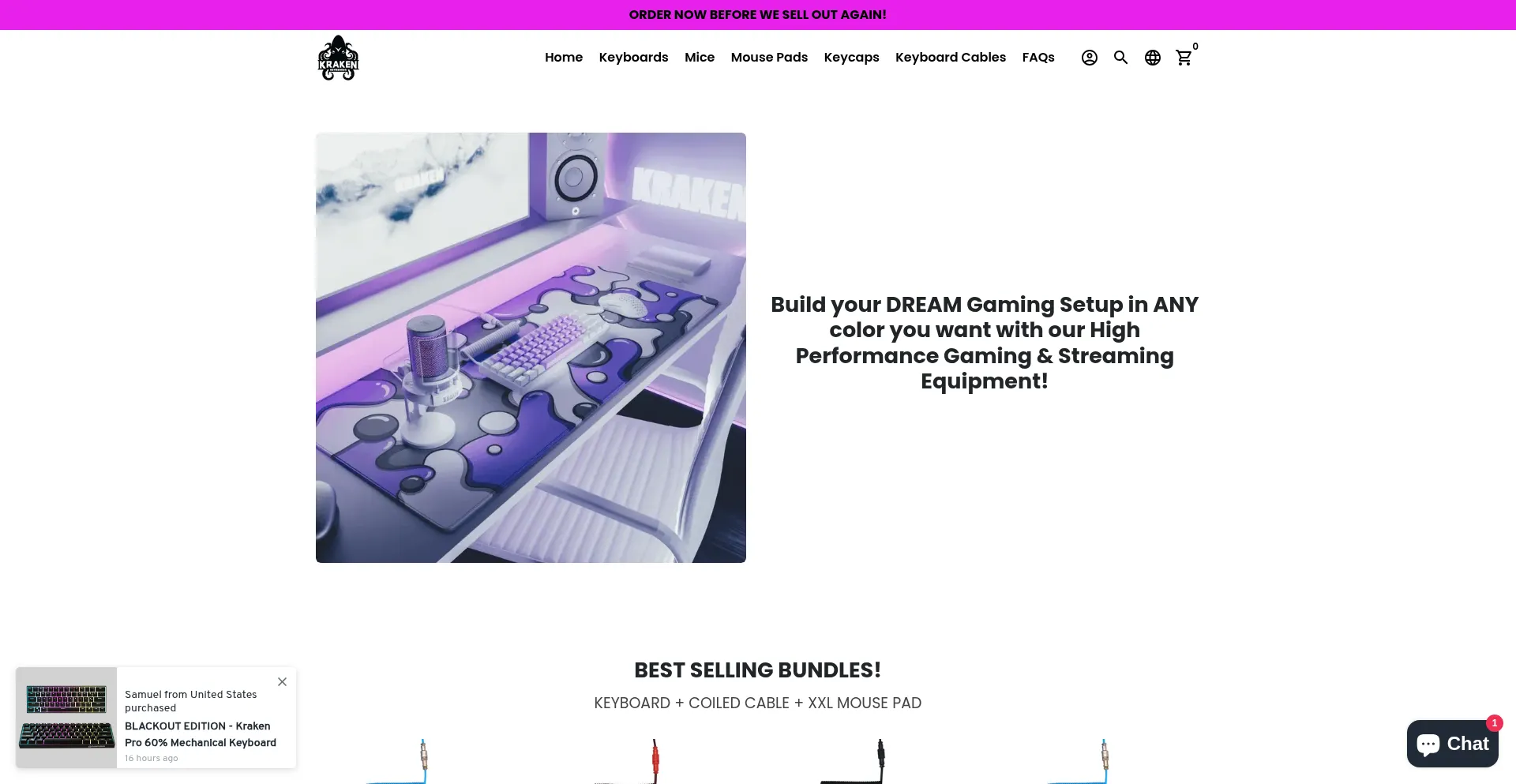 Kraken Keyboards provides Mechanical Keyboards in over 100+ colors, RGB Keycaps, XXL Mouse Pads, and Custom Coiled keyboard cables and Wireless Gaming Mice | World Wide Shipping
