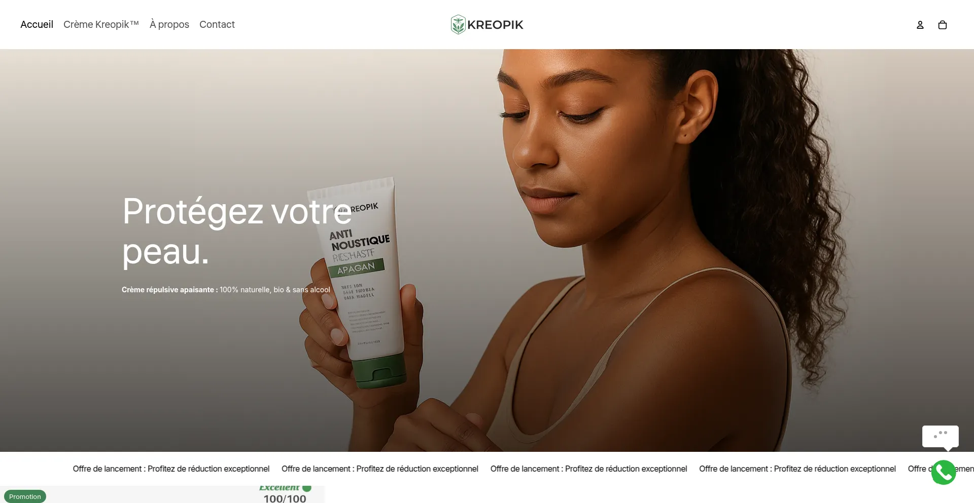 KREOPIK - Crème anti-moustique naturelle, efficace jusqu'à 12h. Formule bio, vegan. Testée scientifiquement – protection douce pour toute la famille.