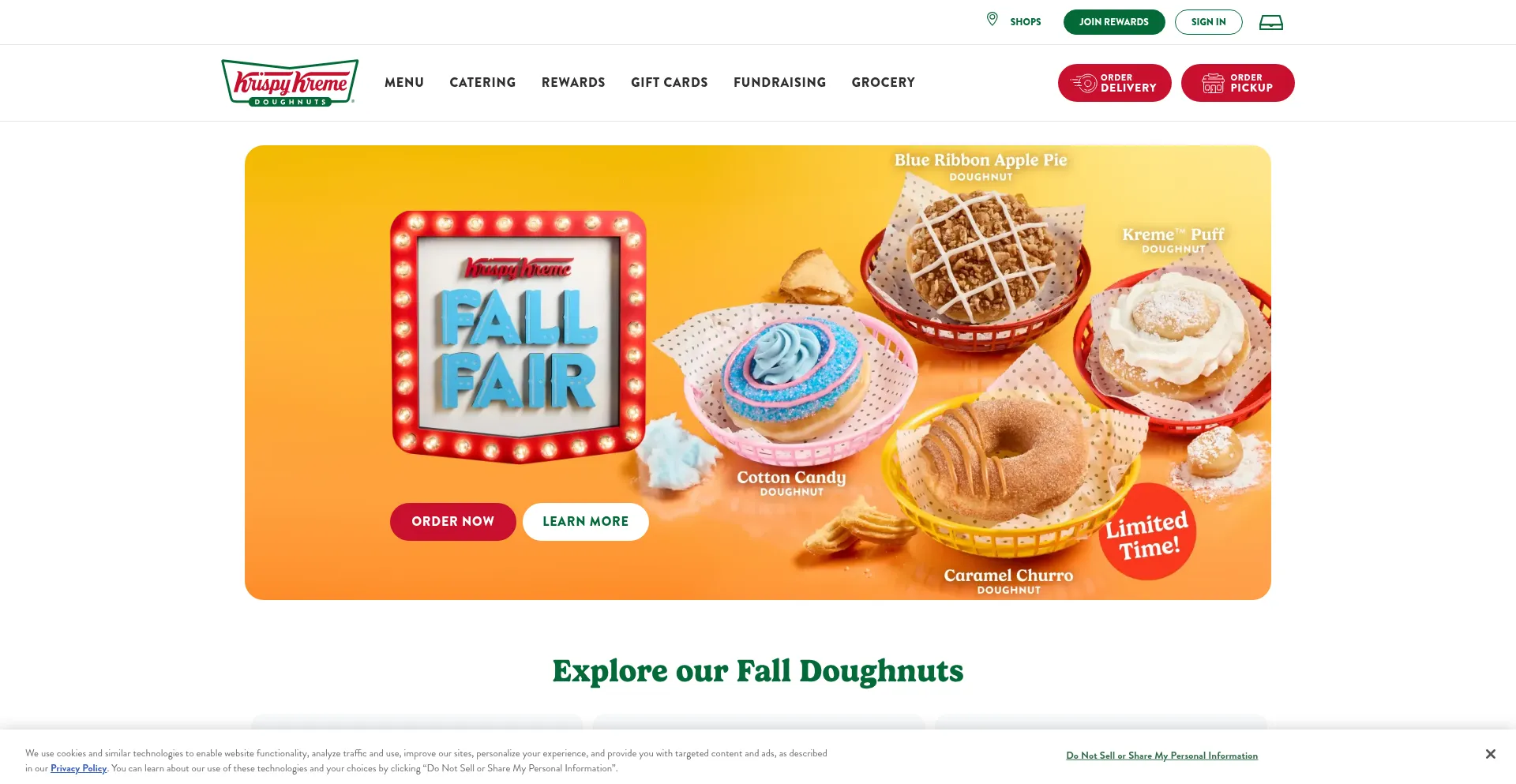 The website implements cookie consent mechanisms in compliance with privacy regulations such as GDPR or CCPA. This demonstrates that krispykreme.com adheres to data protection standards and provides users with control over personal data collection practices.