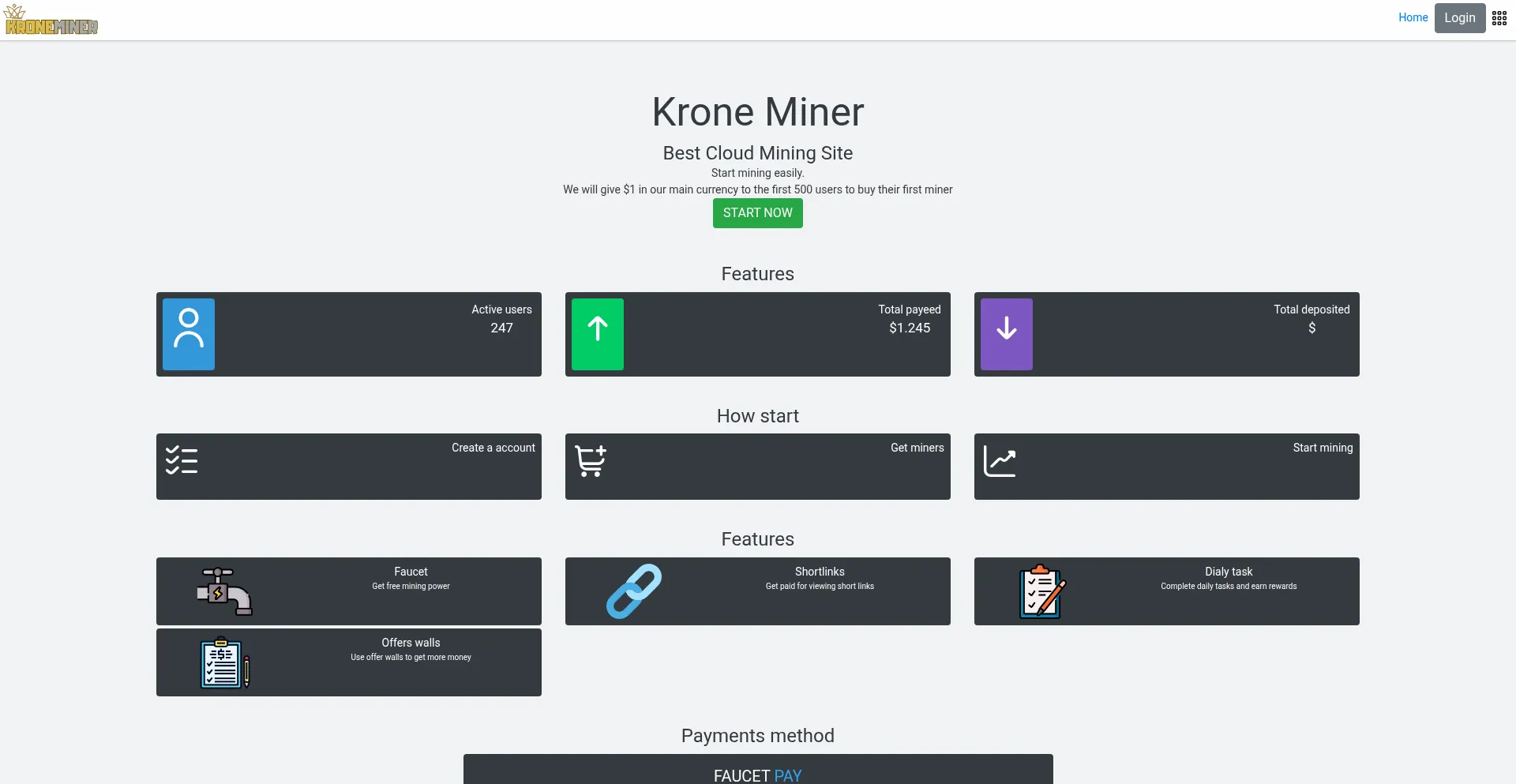 The kroneminer.site probably offers cloud mining services or cryptocurrency mining investments. Some platforms provide legitimate mining rental services, while others may use fake mining dashboards to display virtual earnings that cannot be withdrawn.