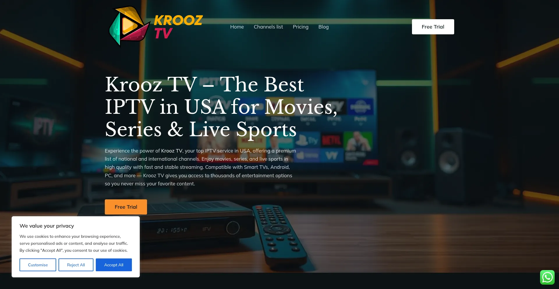 Experience the power of Krooz TV, your top IPTV service in USA, offering a premium list of national and international channels. Enjoy movies, series, and live