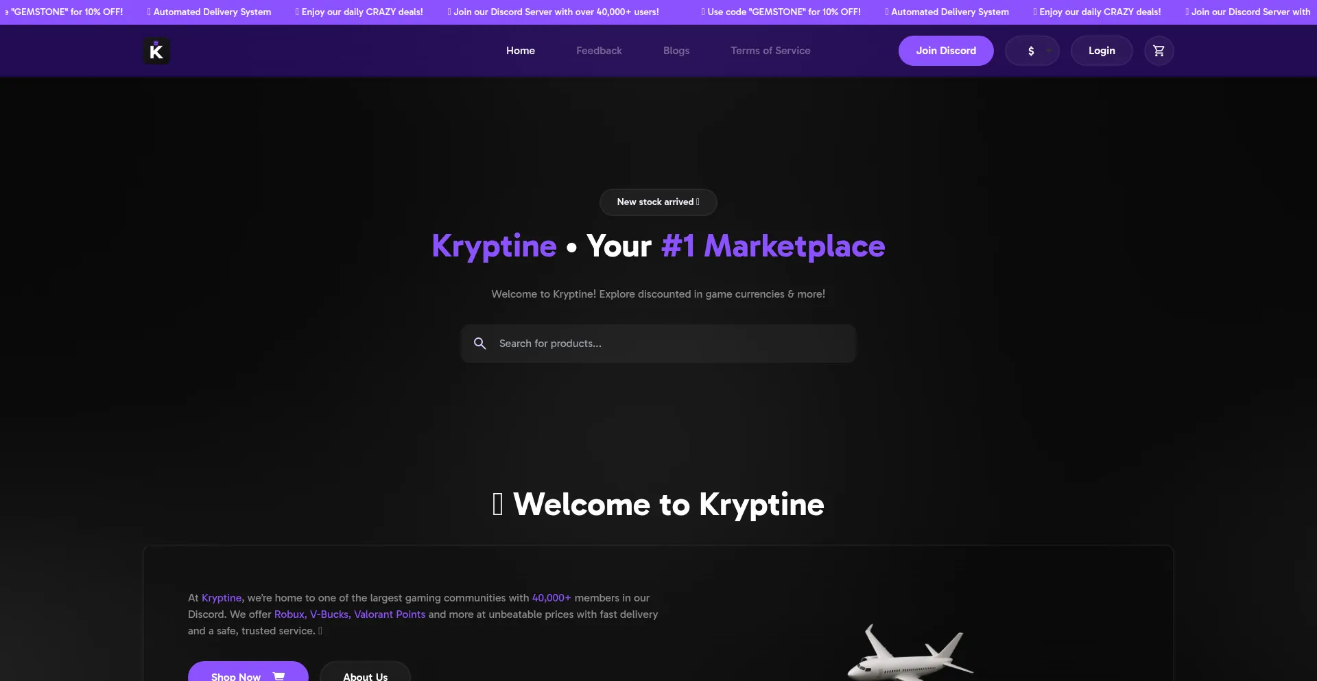 Buy Cheap Robux, V-Bucks, and Valorant Points at Kryptine. Instant delivery, safe checkout, and the lowest prices on digital currencies. Your trusted shop for fast, affordable g...