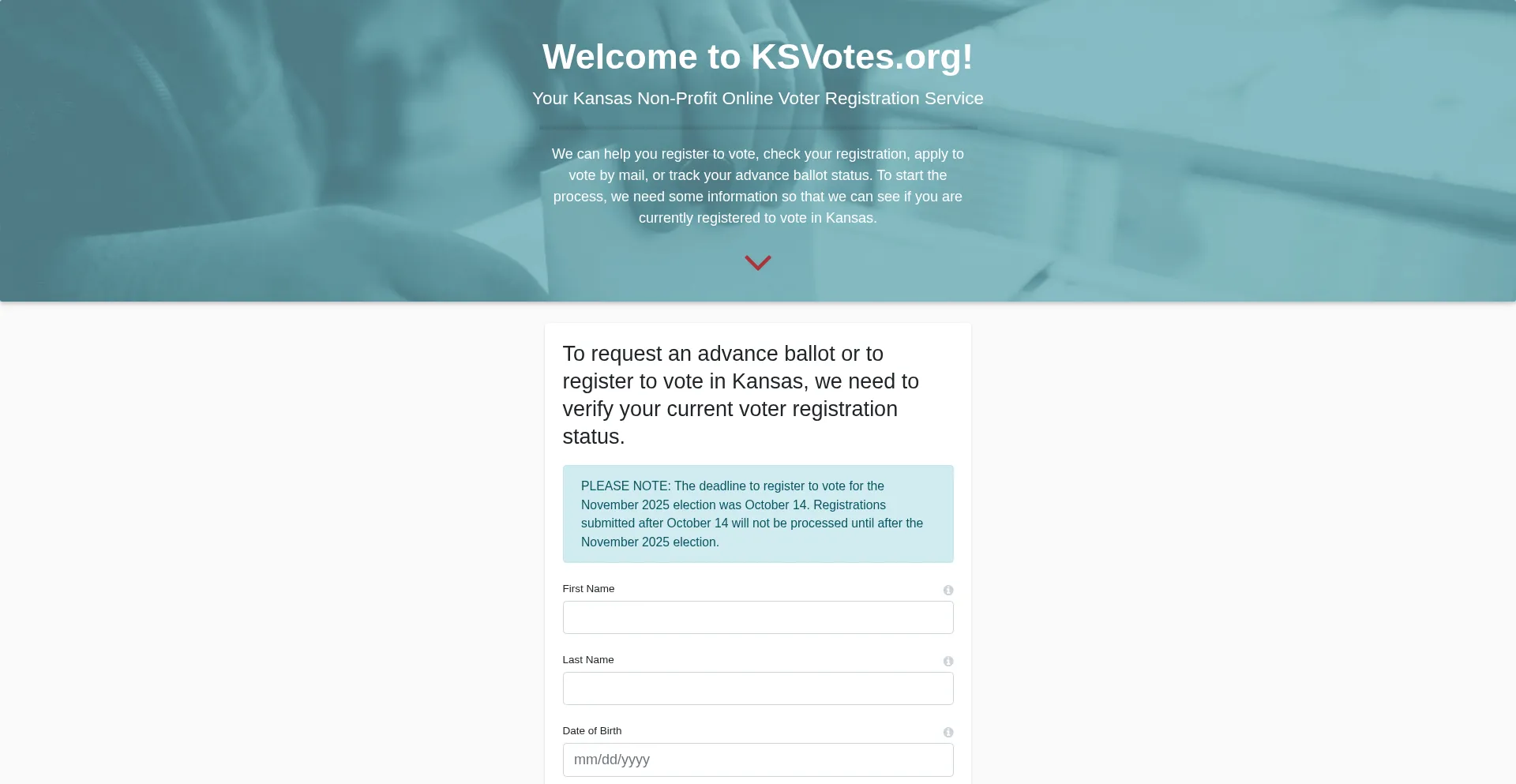The ksvotes.org website implements data collection forms that may request personal information including names, email addresses, phone numbers, or other sensitive details. Users should verify the legitimacy of it and review privacy policies before submitting personal data.