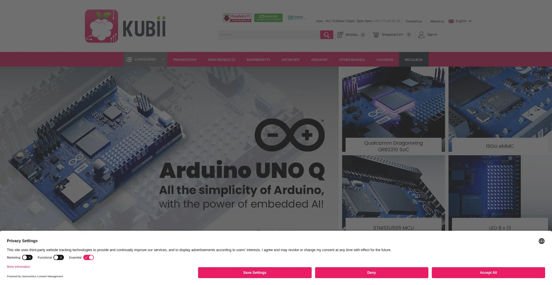 Official distributor of the Raspberry PI and its accessories, online sale of extension cards Arduino, retrogaming hardware and robotic leisure equipment.