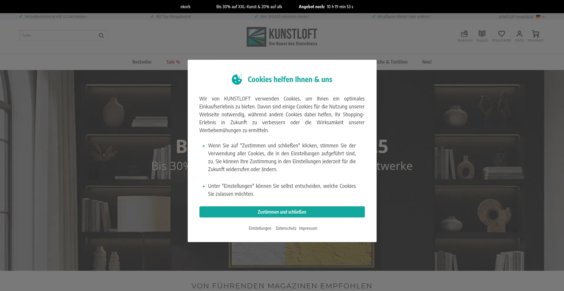 The kunstloft.de website uses Google Tag Manager to add and update tracking tags on its website.