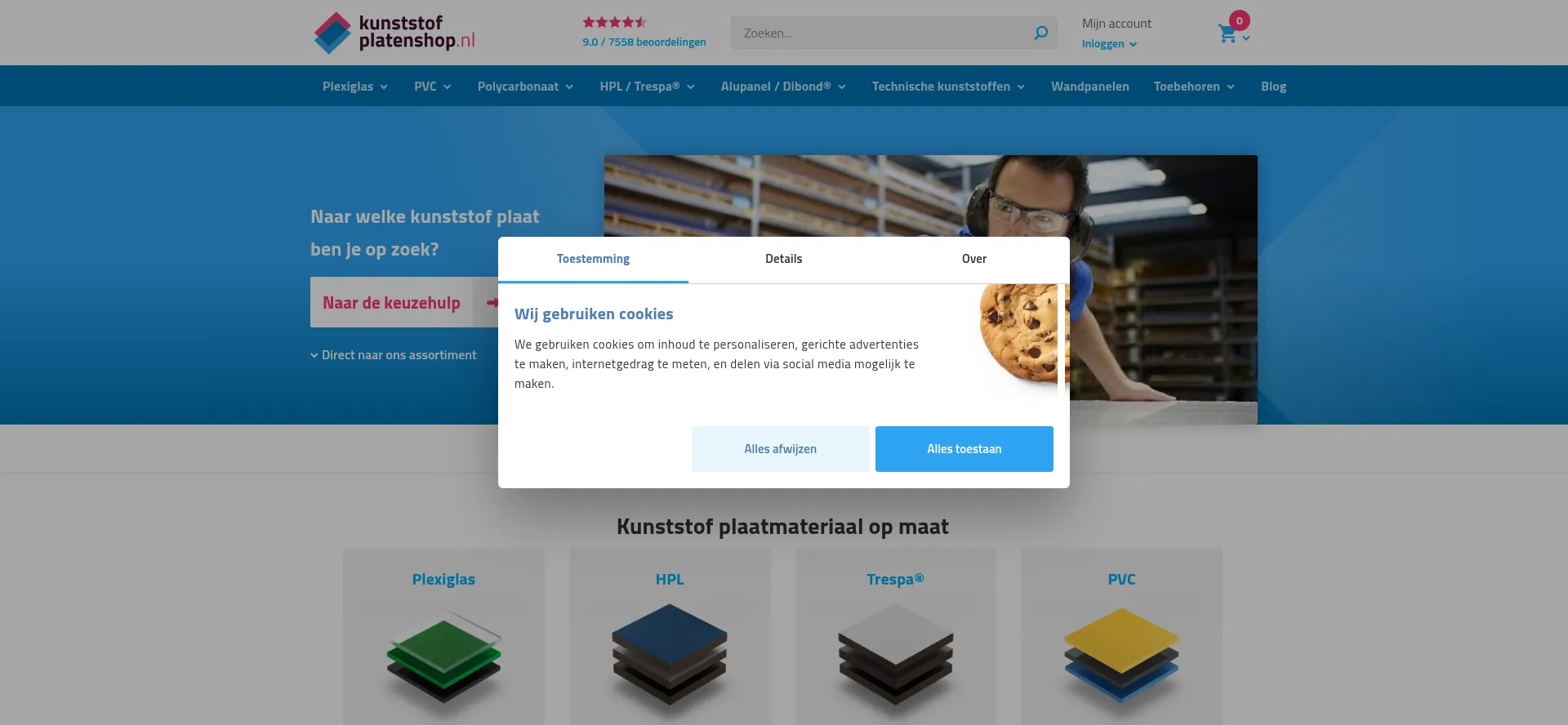 The website implements cookie consent mechanisms in compliance with privacy regulations such as GDPR or CCPA. This demonstrates that kunststofplatenshop.nl adheres to data protection standards and provides users with control over personal data collection practices.