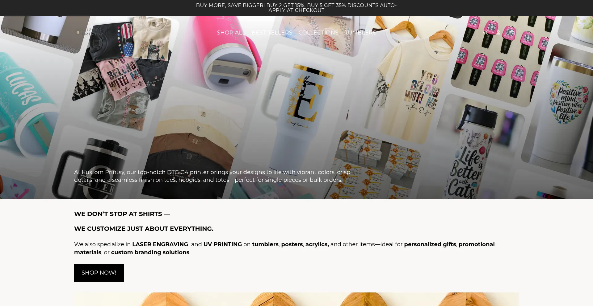 Our analyzer determines that website kustomprintsy.com is using Shopify CMS. Shopify is a popular e-commerce platform, powering around 4.4% of websites globally.