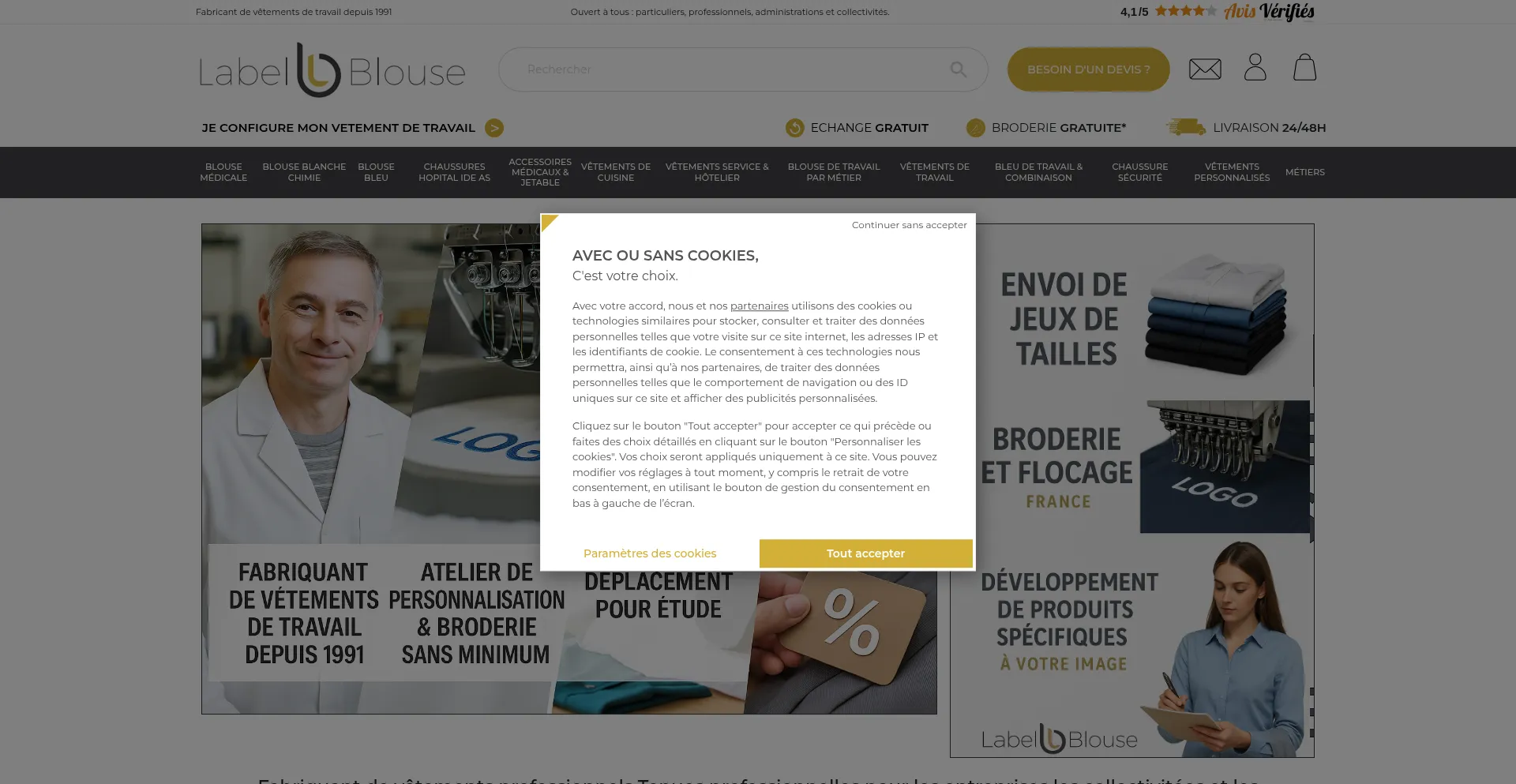 Fabricant de vêtement de travail particulier professionnel depuis 1991. Santé industrie esthétique propreté. Broderie et frais de port offert.