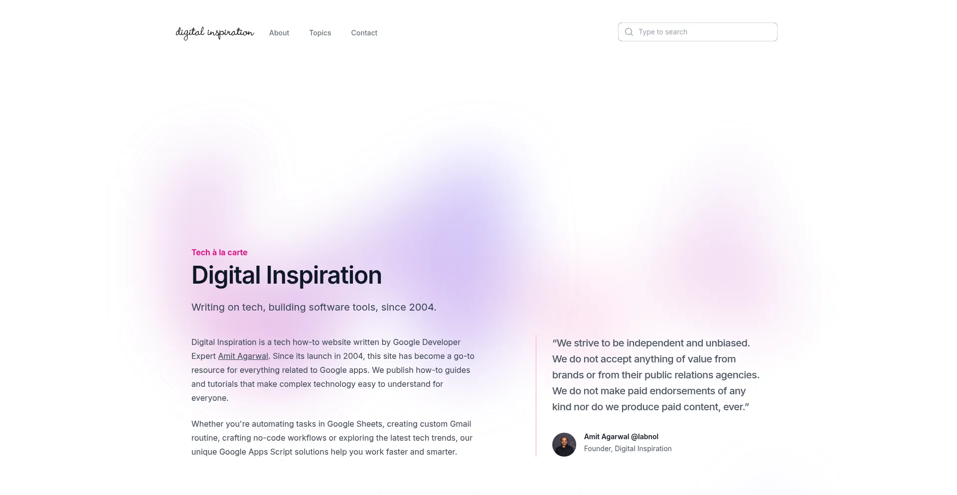 Digital Inspiration offers tech how-to guides, software tips, and video tutorials around all things tech and productivity.