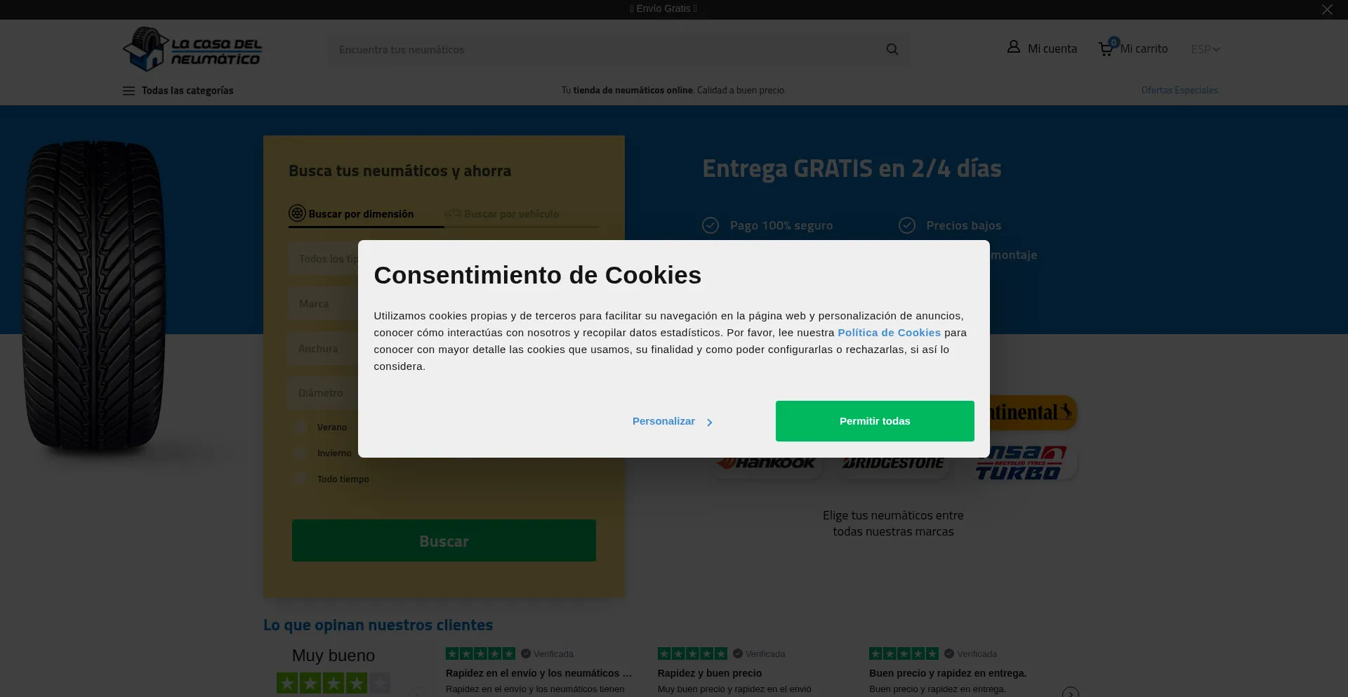 The website implements cookie consent mechanisms in compliance with privacy regulations such as GDPR or CCPA. This demonstrates that lacasadelneumatico.com adheres to data protection standards and provides users with control over personal data collection practices.