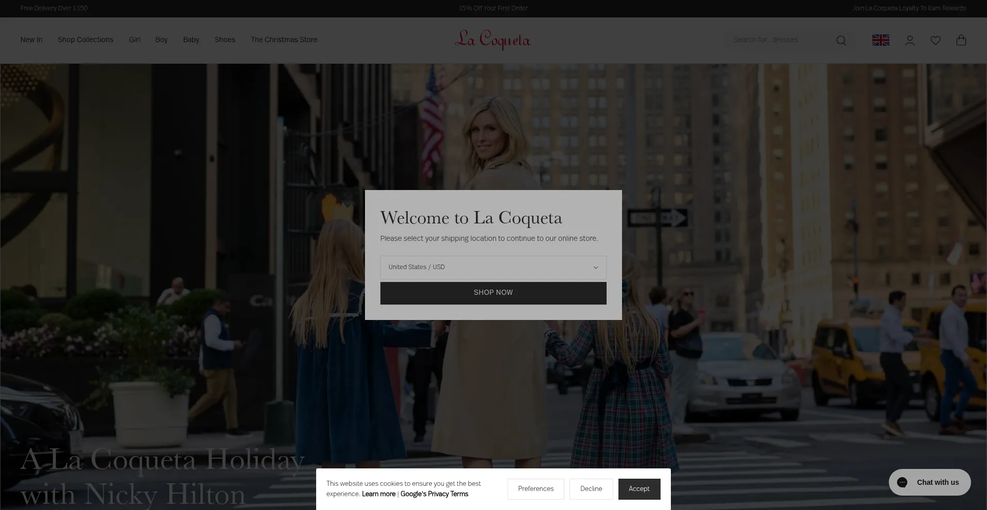 The website implements cookie consent mechanisms in compliance with privacy regulations such as GDPR or CCPA. This demonstrates that lacoquetakids.com adheres to data protection standards and provides users with control over personal data collection practices.