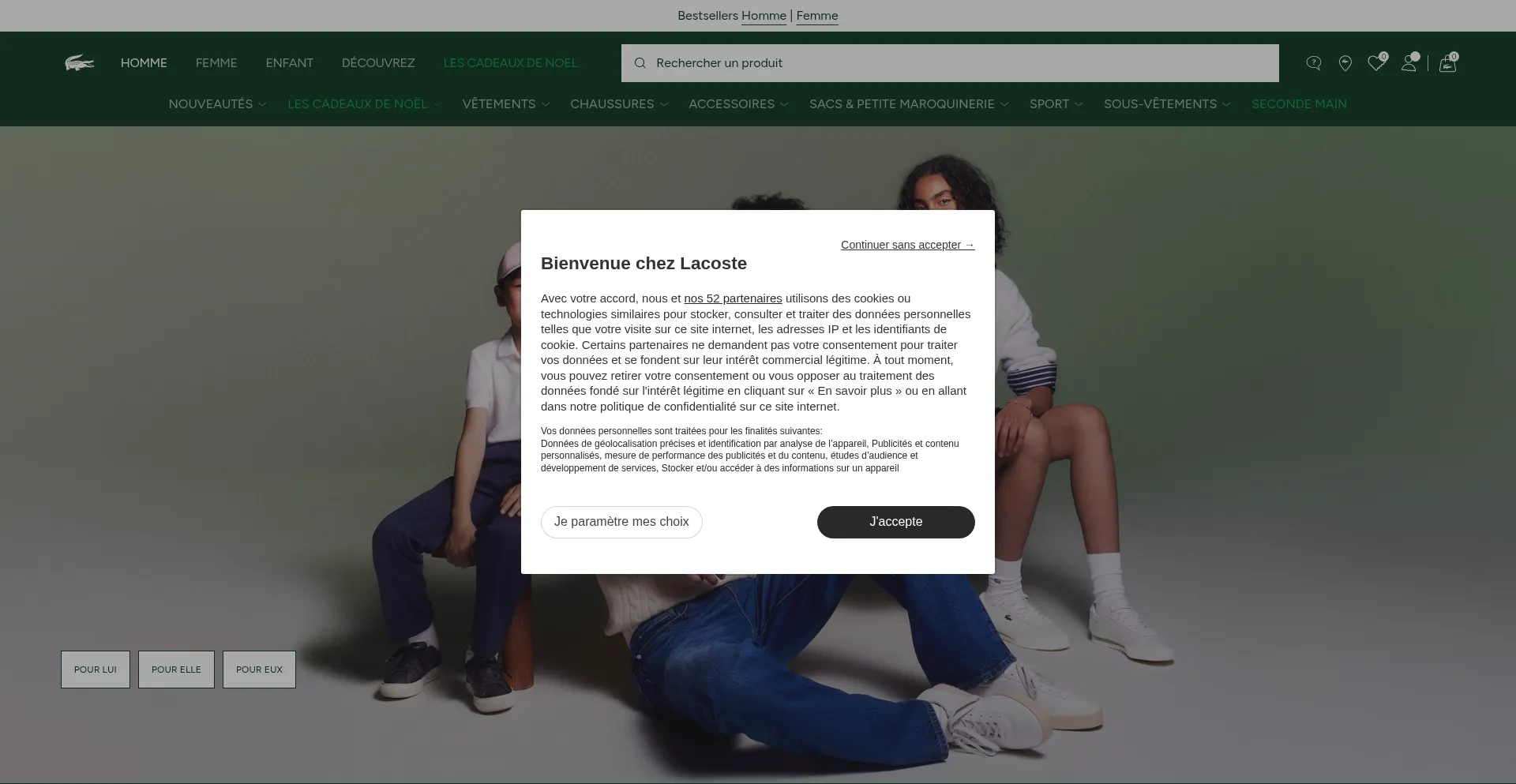 The lacoste.fr website uses Google Tag Manager to add and update tracking tags on its website.