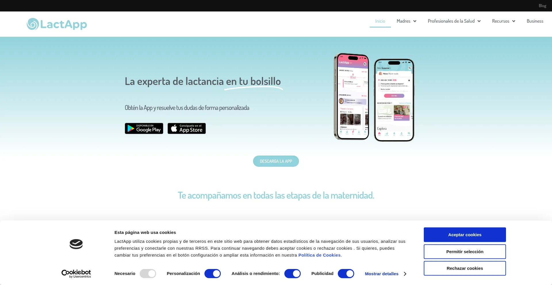The website implements cookie consent mechanisms in compliance with privacy regulations such as GDPR or CCPA. This demonstrates that lactapp.es adheres to data protection standards and provides users with control over personal data collection practices.