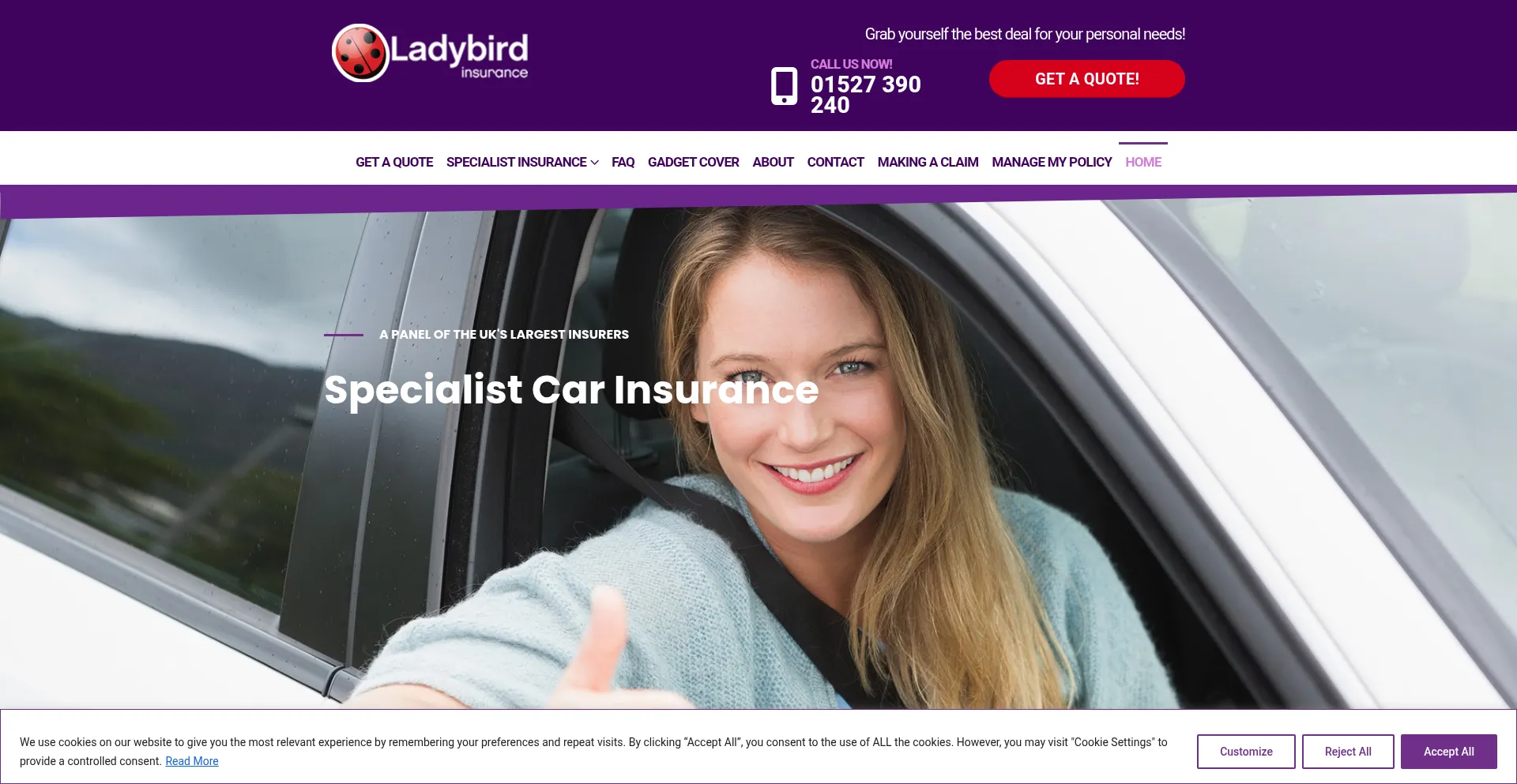 The website implements cookie consent mechanisms in compliance with privacy regulations such as GDPR or CCPA. This demonstrates that ladybirdinsurance.co.uk adheres to data protection standards and provides users with control over personal data collection practices.