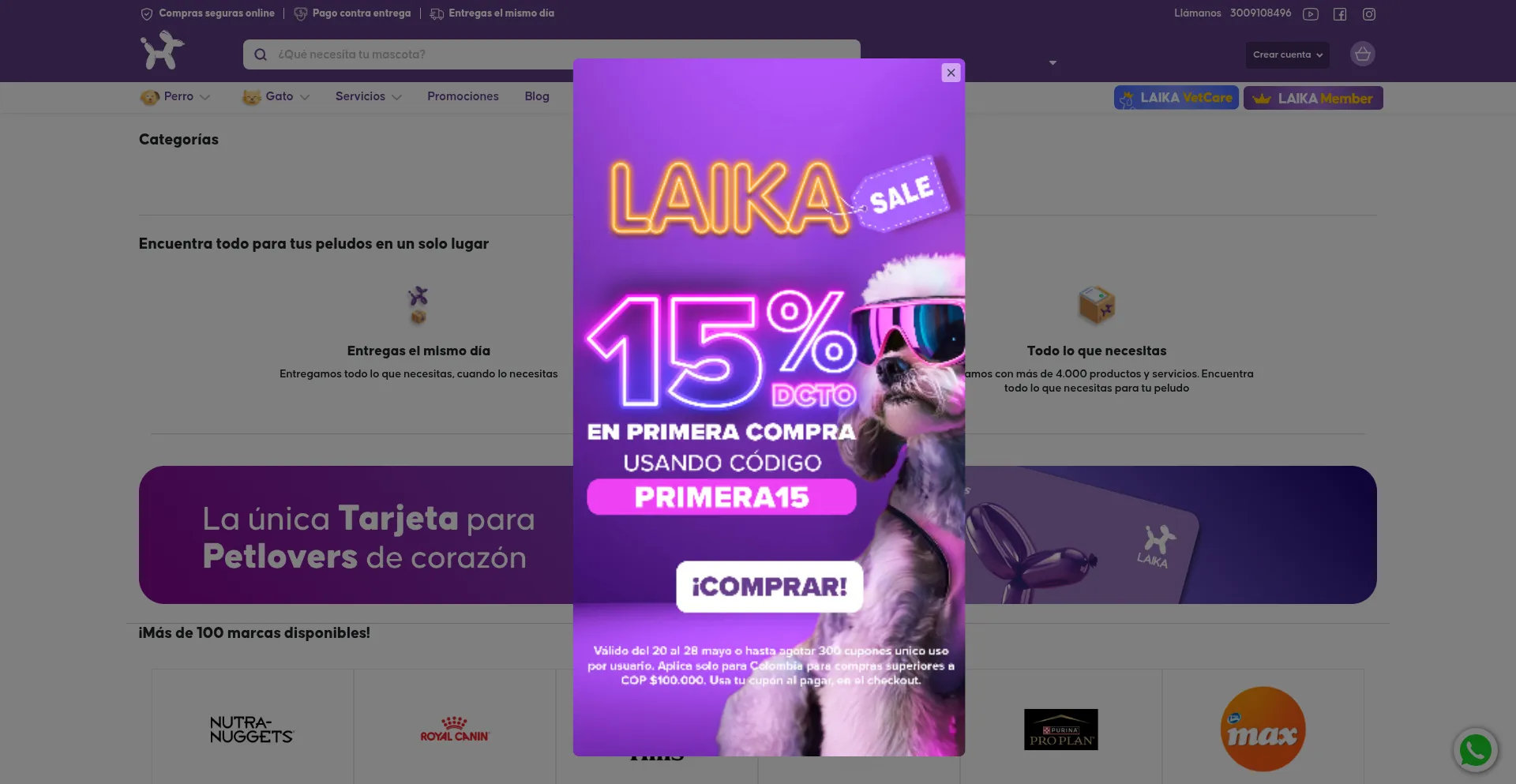Queremos que tengas más momentos peludos y en LAIKA encuentras todo para tu mascota a domicilio. Concentrados,húmedo,barf,snacks,juguetes,camas,plaquitas,medicinas,antipulgas,...