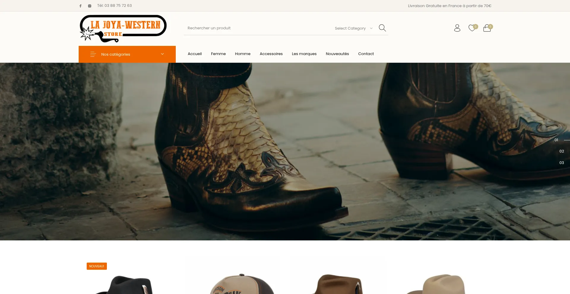 Lajoya-Western, le Spécialiste du Monde Western. Large choix de produits Western. Santiags, chapeaux, chemises en jeans, ceintures et boucles , etc.... amateurs US - danse Coun...