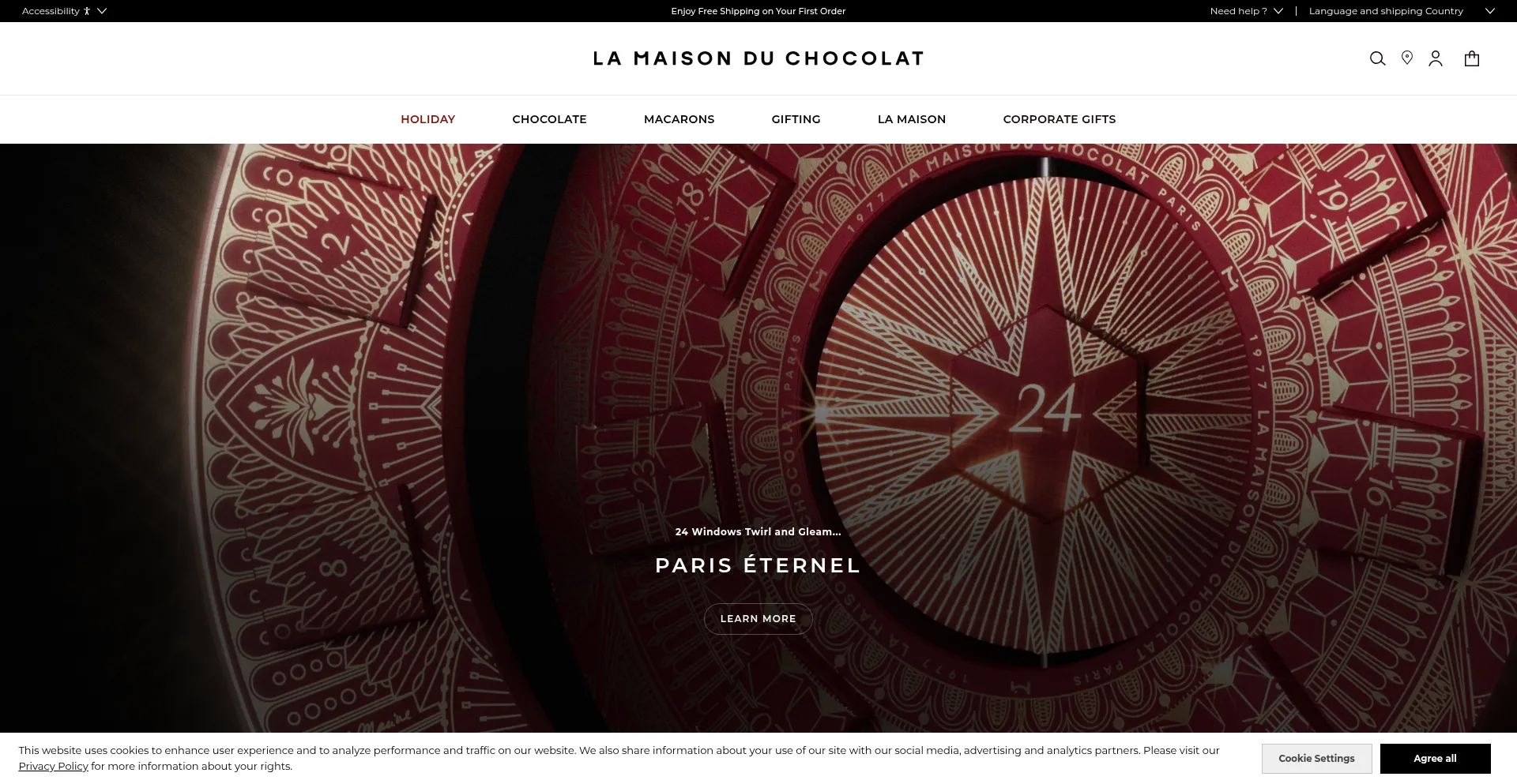 The website implements cookie consent mechanisms in compliance with privacy regulations such as GDPR or CCPA. This demonstrates that lamaisonduchocolat.com adheres to data protection standards and provides users with control over personal data collection practices.