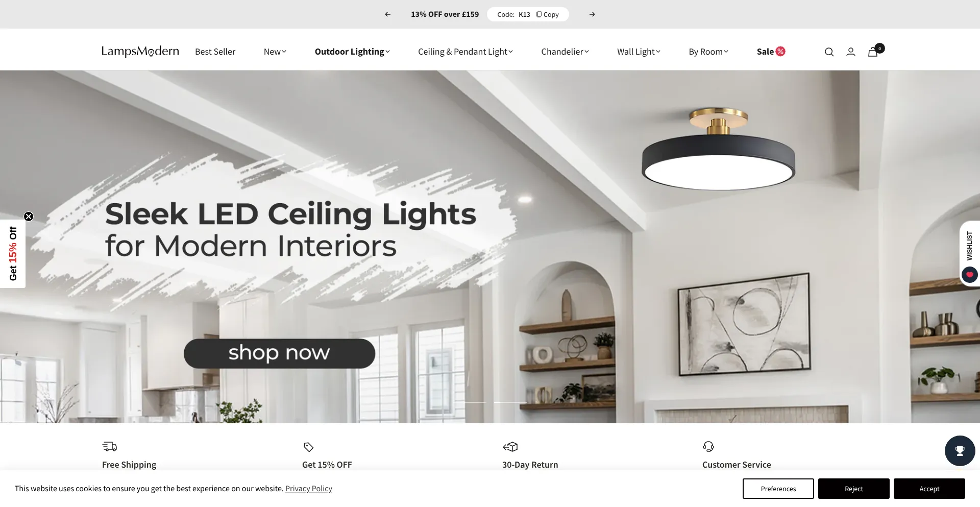 Analysis indicates that lampsmodern.co.uk operates as an e-commerce platform facilitating online transactions for goods or services. The website implements shopping cart functionality, payment processing systems, and product catalog features typical of commercial retail operations.