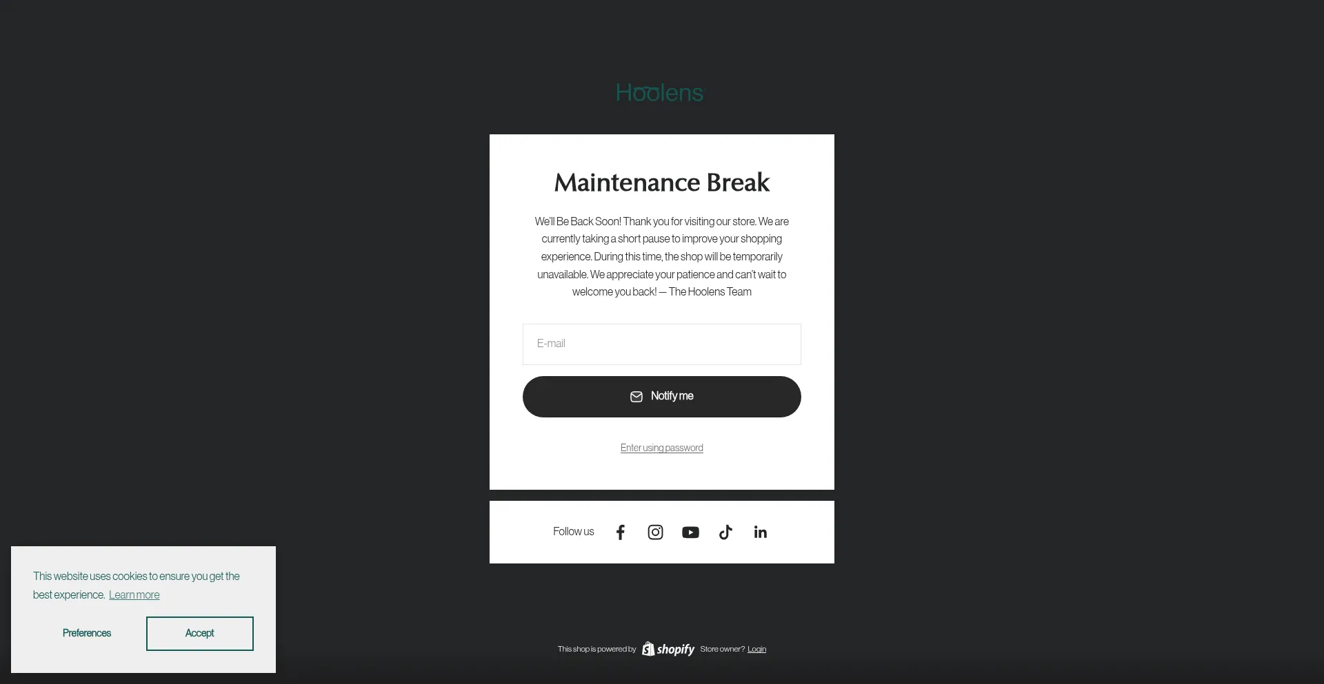 Shopping Uses Free eCommerce Engine Cookie Consent Shopify Platform Google Tag Manager Meta Verified Facebook Integration Social Media Links AI-generated Text Multilanguage Established Domain