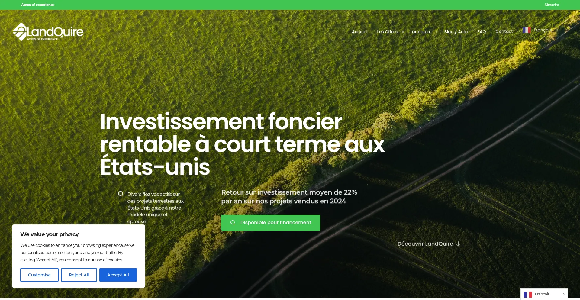 Investissez dans des terrains aux États-Unis avec LandQuire. Rendement moyen de 22 % et gestion clé en main pour un placement sécurisé.