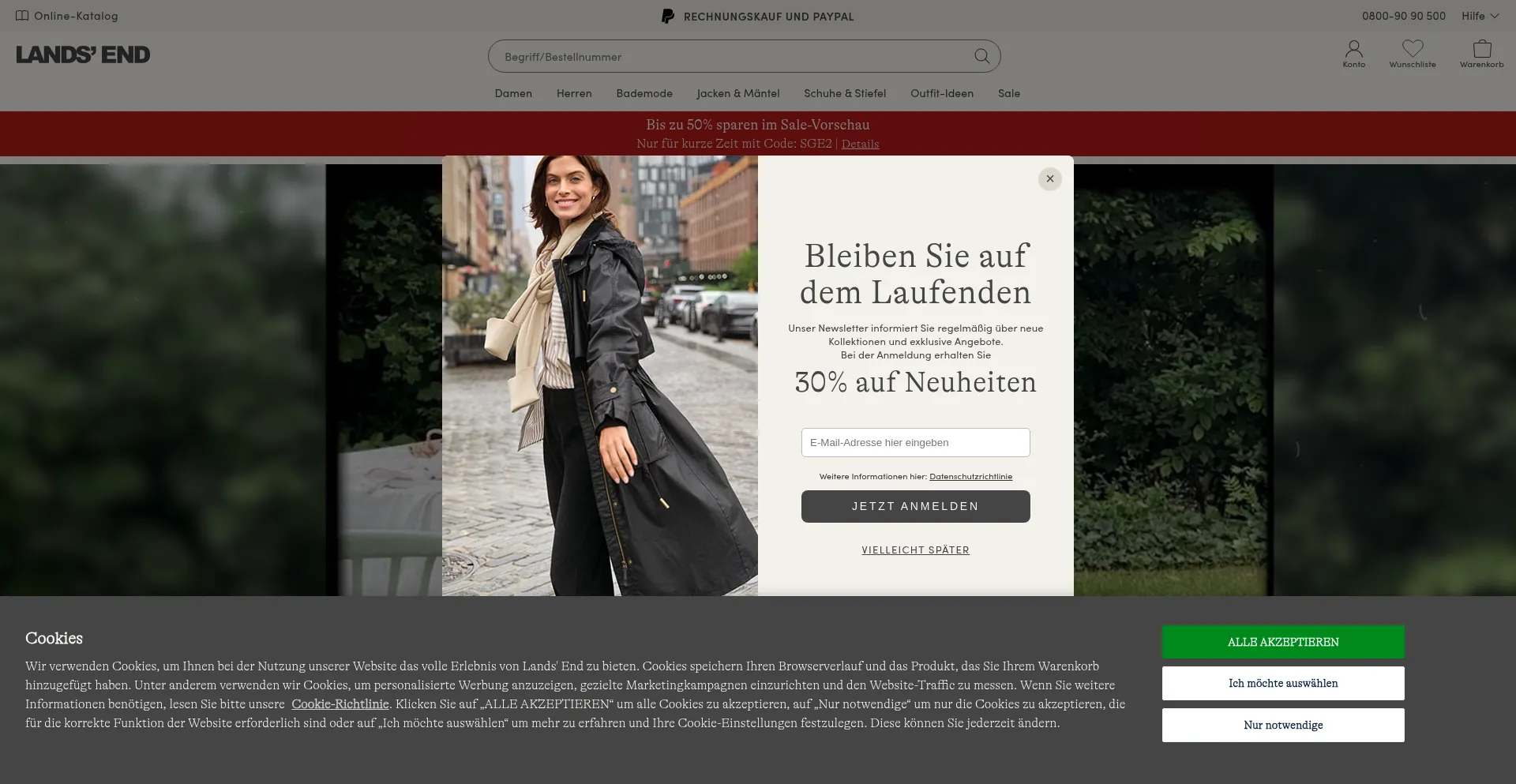 The website implements cookie consent mechanisms in compliance with privacy regulations such as GDPR or CCPA. This demonstrates that landsend.de adheres to data protection standards and provides users with control over personal data collection practices.