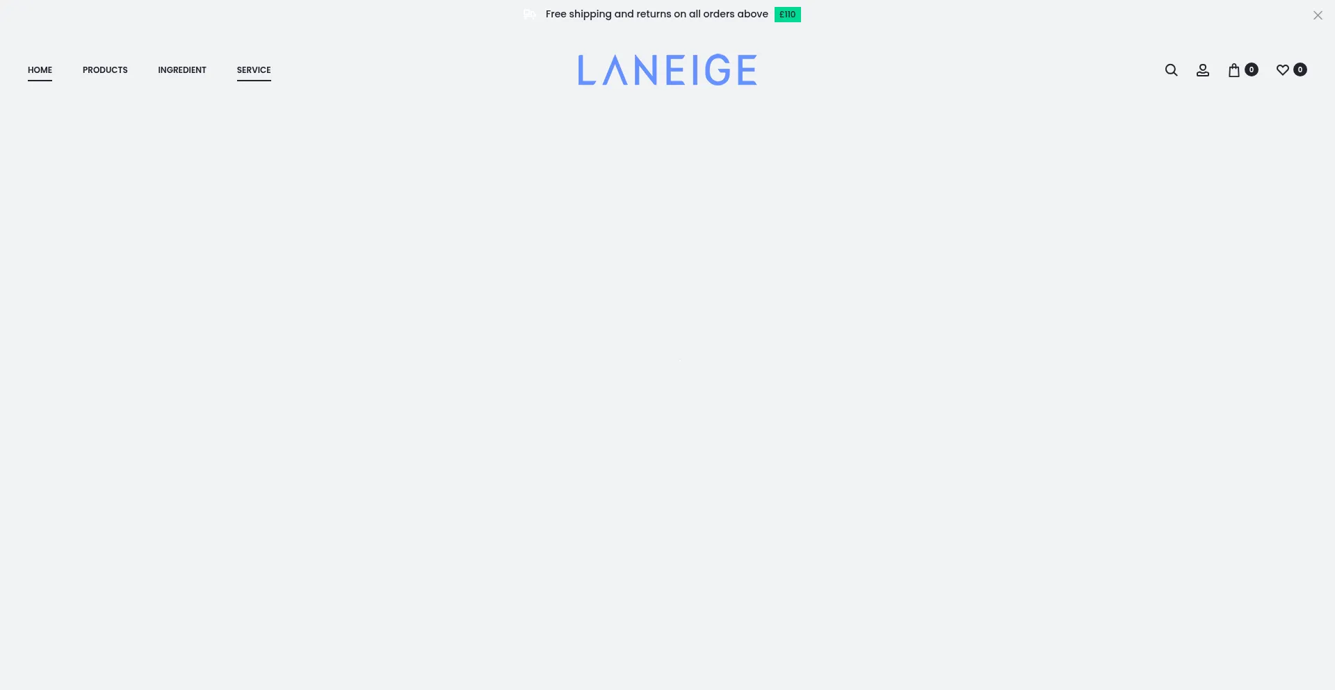 Analysis indicates that laneigeuk.com operates as an e-commerce platform facilitating online transactions for goods or services. The website implements shopping cart functionality, payment processing systems, and product catalog features typical of commercial retail operations.