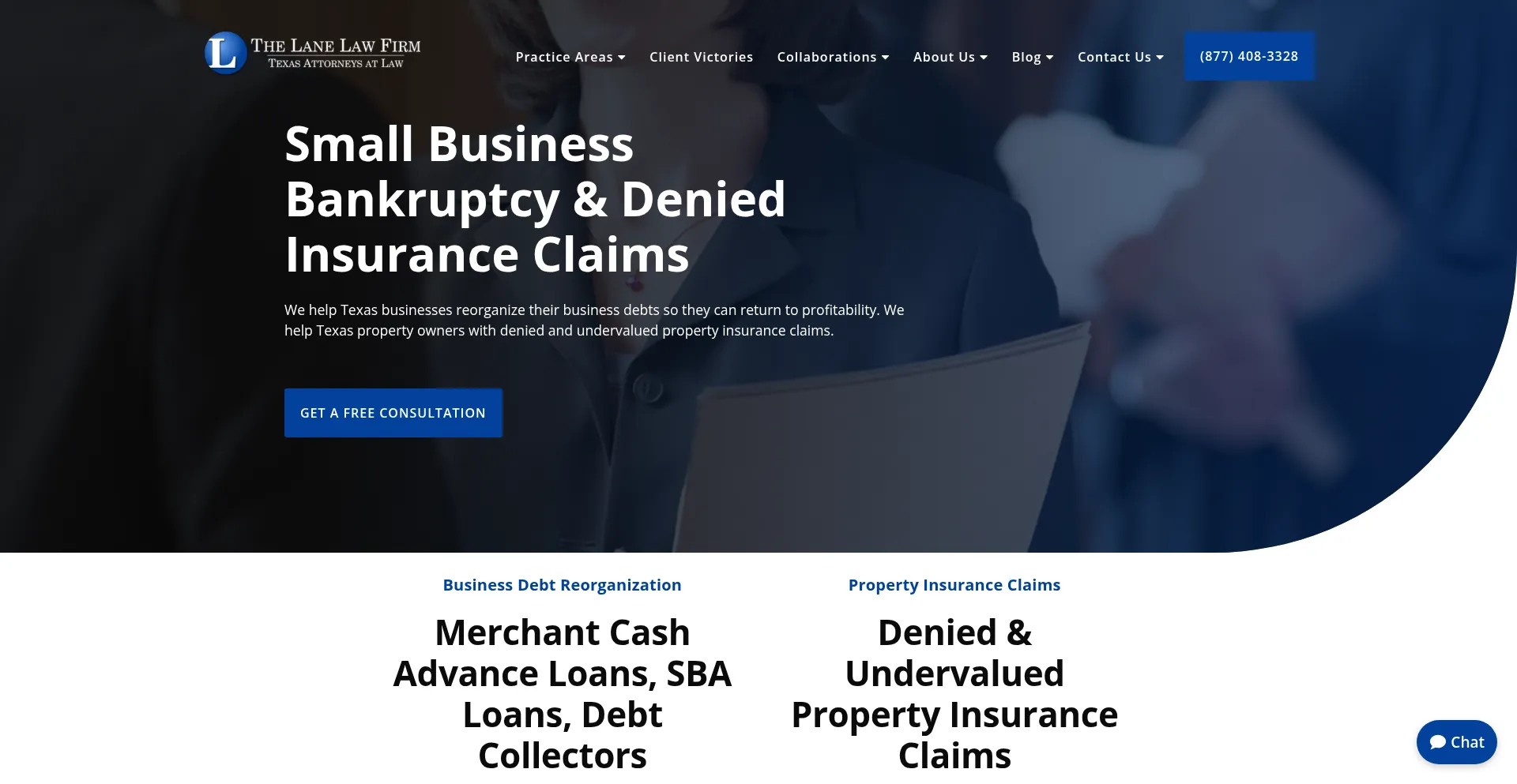 The Lane Law Firm specializes in business bankruptcy, personal bankruptcy, business debt relief, and denied property insurance claims. Call (877) 408-3328