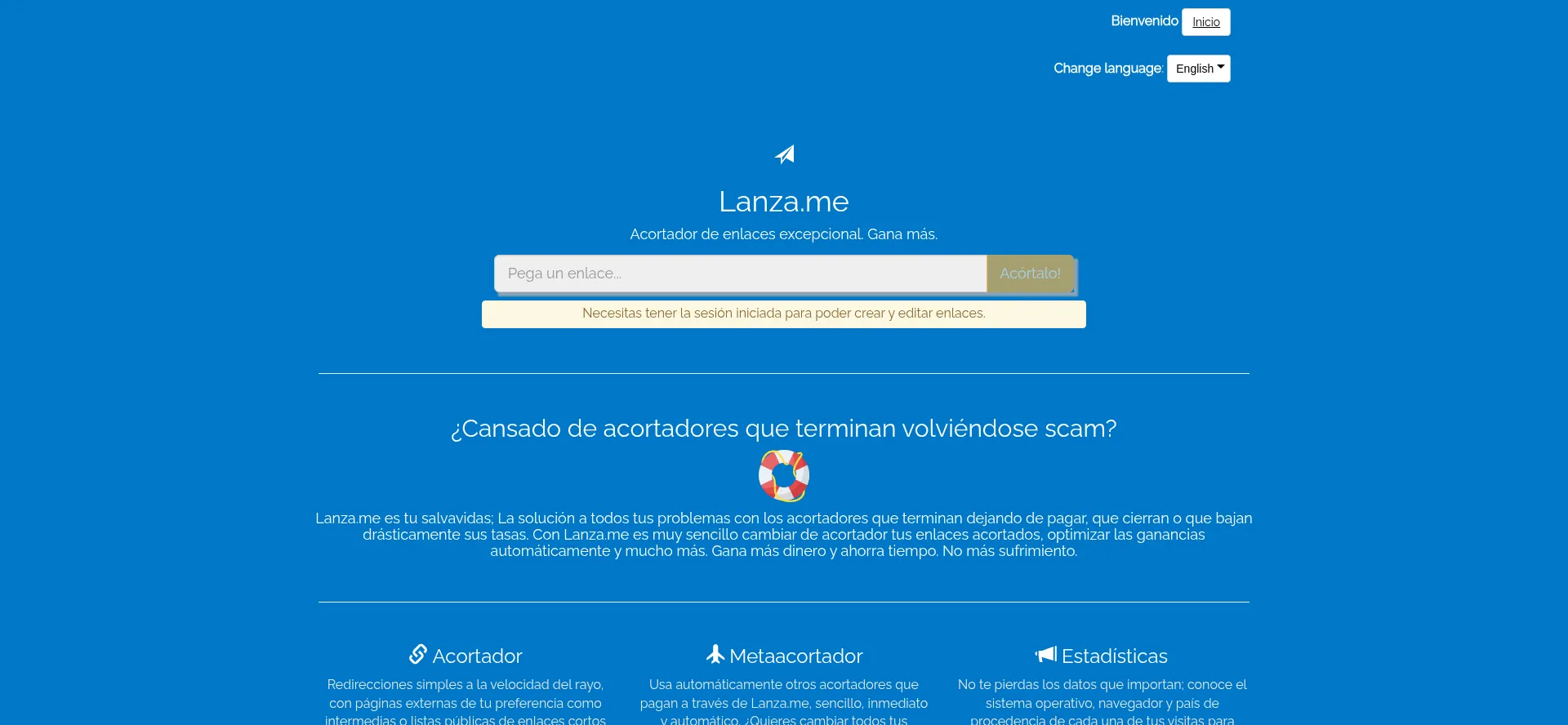 Lanza.me es tu salvavidas; La solución a todos tus problemas con los acortadores que terminan dejando de pagar, que cierran o que bajan drásticamente sus tasas.