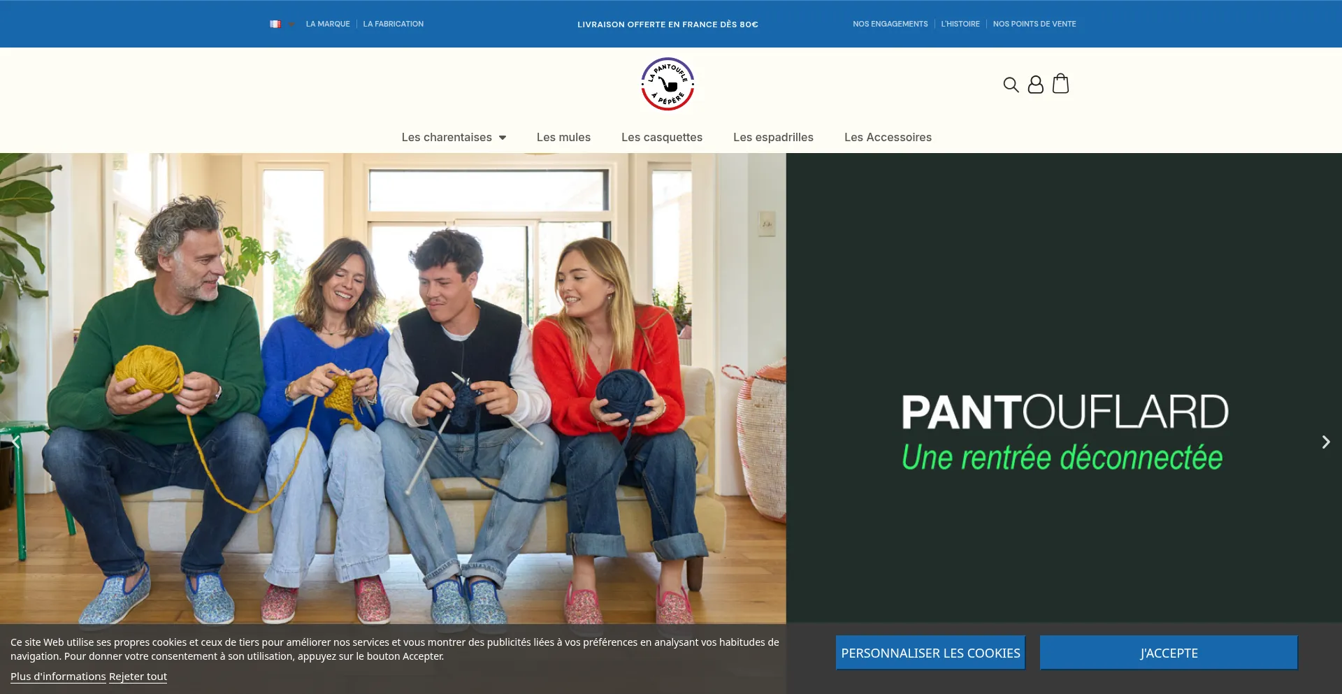 Pantoufles, charentaises et chaussons pour hommes, femmes et enfants
