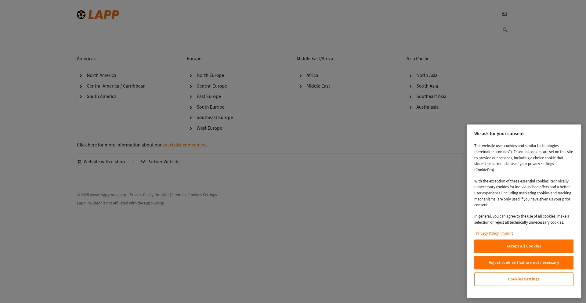 The website implements cookie consent mechanisms in compliance with privacy regulations such as GDPR or CCPA. This demonstrates that lappgroup.com adheres to data protection standards and provides users with control over personal data collection practices.
