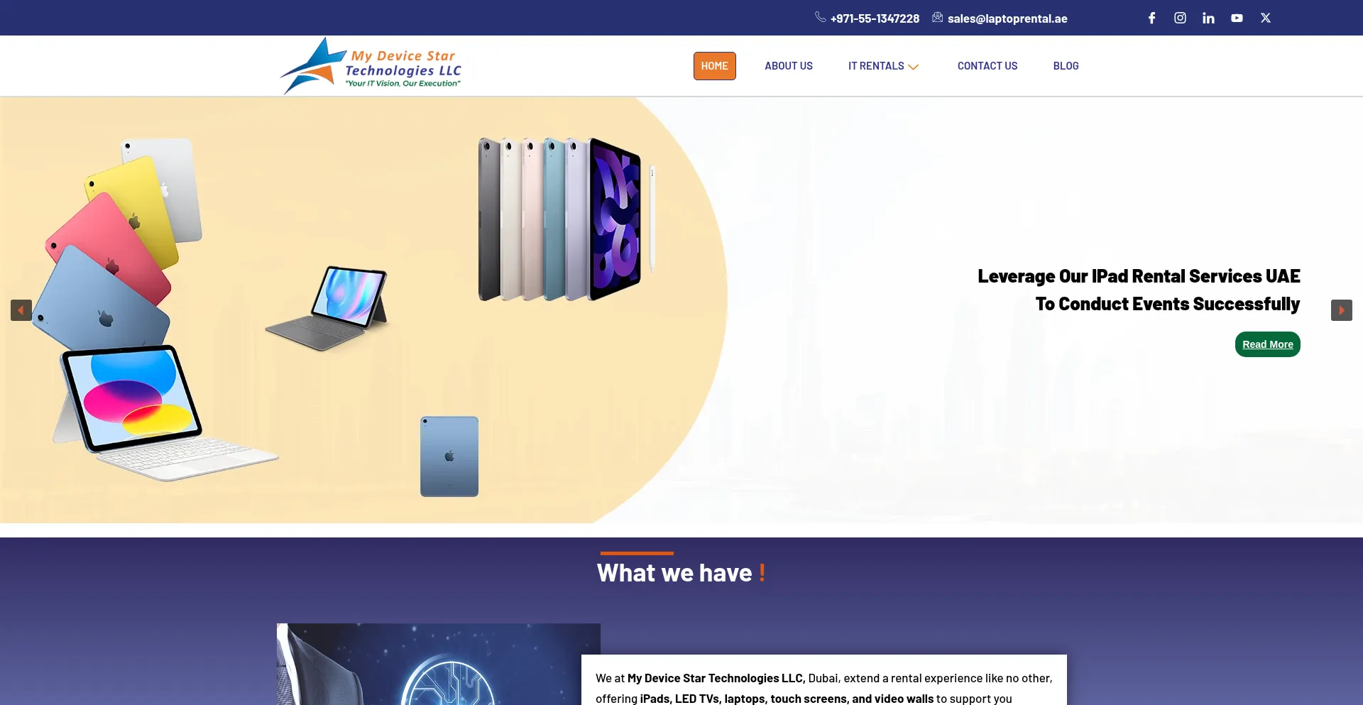 Looking for laptop rental in Dubai? My Device Star Technologies offers laptops, iPads, touch screens & LED TVs for events & offices. Call +971-55-1347228 today!