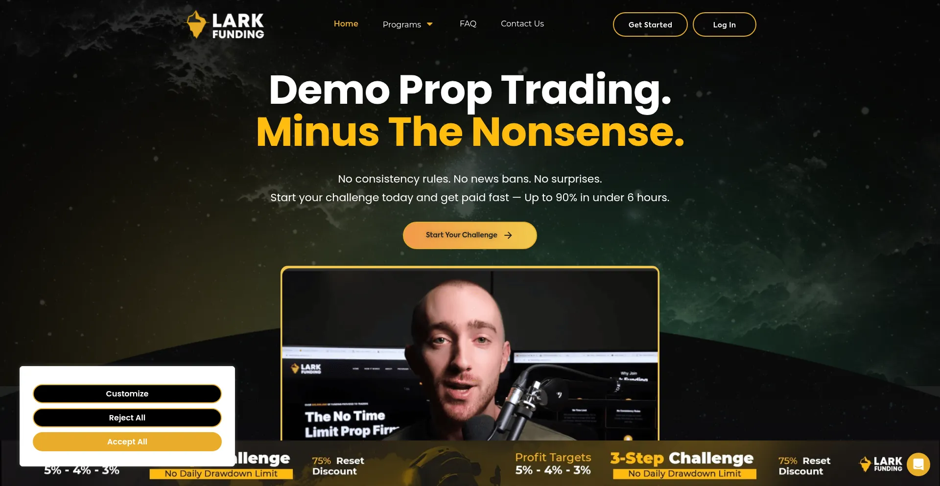 Demo Prop Trading. Minus The Nonsense. No consistency rules. No news bans. No surprises.Start your challenge today and get paid fast — Up to 90% in under 6 hours. Start Your C...
