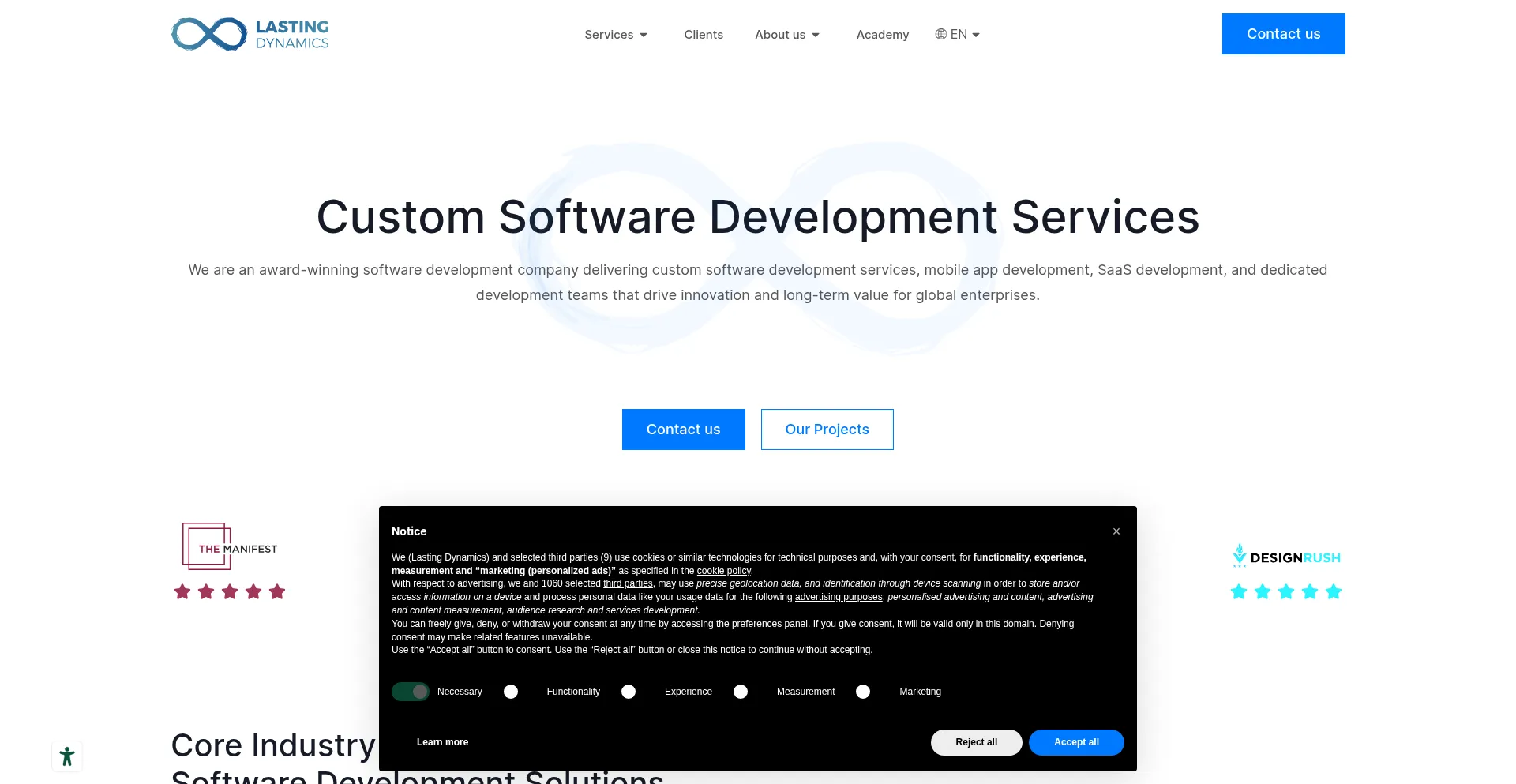 The website implements cookie consent mechanisms in compliance with privacy regulations such as GDPR or CCPA. This demonstrates that lastingdynamics.com adheres to data protection standards and provides users with control over personal data collection practices.