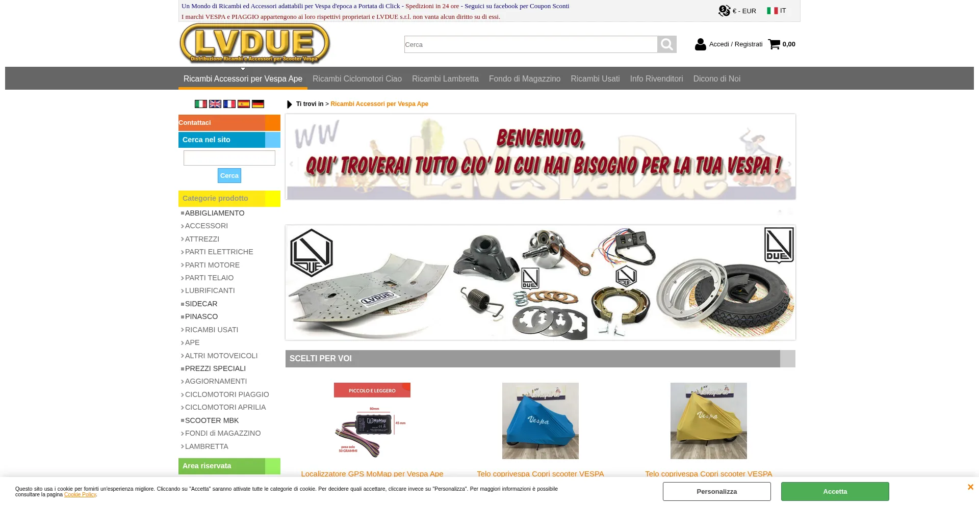 Ricambi La Vespa Due Azienda Leader di livello Iternazionale dedita alla Distribuzione di Ricambi ed accessori adattabili a Scooter Piaggio Vespa d'epoca Vintage, Ciclomotori Pi...