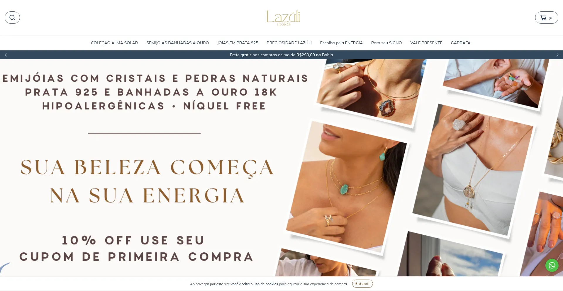 Analysis indicates that lazulibiojoias.com.br operates as an e-commerce platform facilitating online transactions for goods or services. The website implements shopping cart functionality, payment processing systems, and product catalog features typical of commercial retail operations.