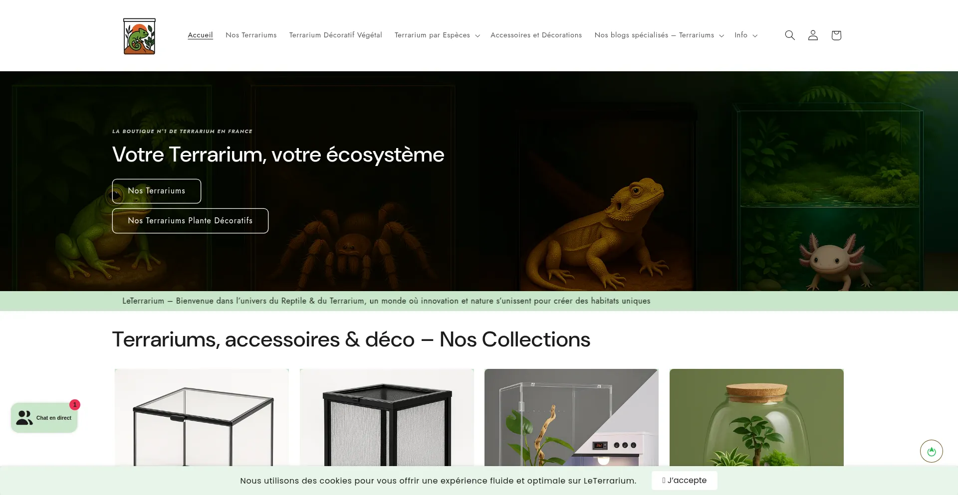 Analysis indicates that le-terrarium.com operates as an e-commerce platform facilitating online transactions for goods or services. The website implements shopping cart functionality, payment processing systems, and product catalog features typical of commercial retail operations.