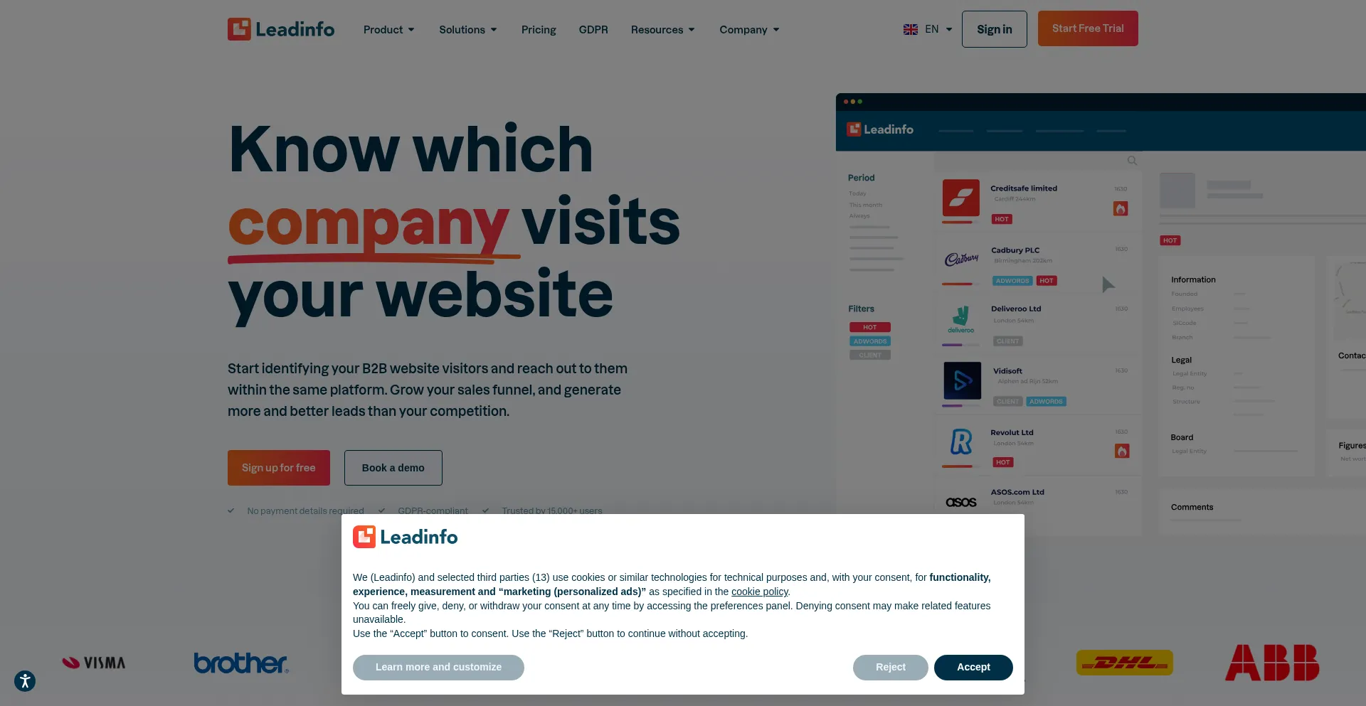 The website implements cookie consent mechanisms in compliance with privacy regulations such as GDPR or CCPA. This demonstrates that leadinfo.com adheres to data protection standards and provides users with control over personal data collection practices.