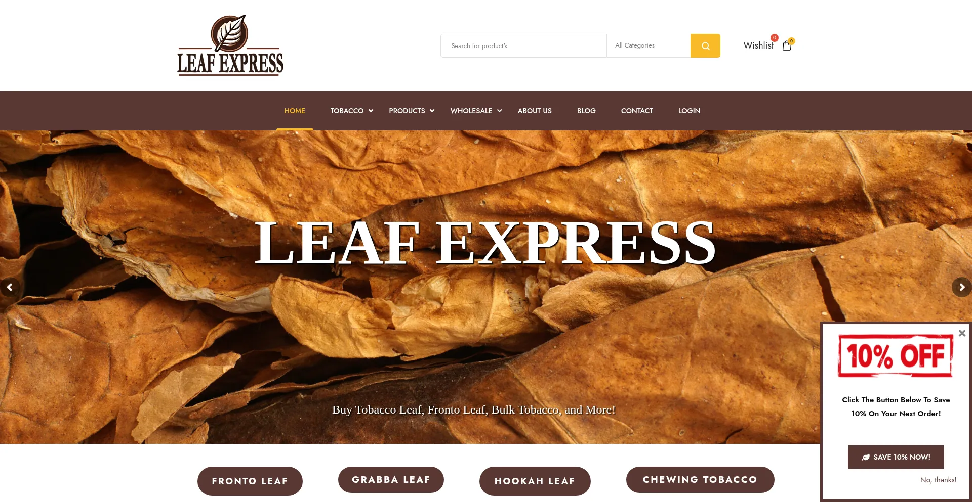 LeafExpress is your number one source for whole tobacco leaves. Offering tobacco leaf bundles, and bulk tobacco for cigars, Fronto leaf, Grabba leaf and much more!