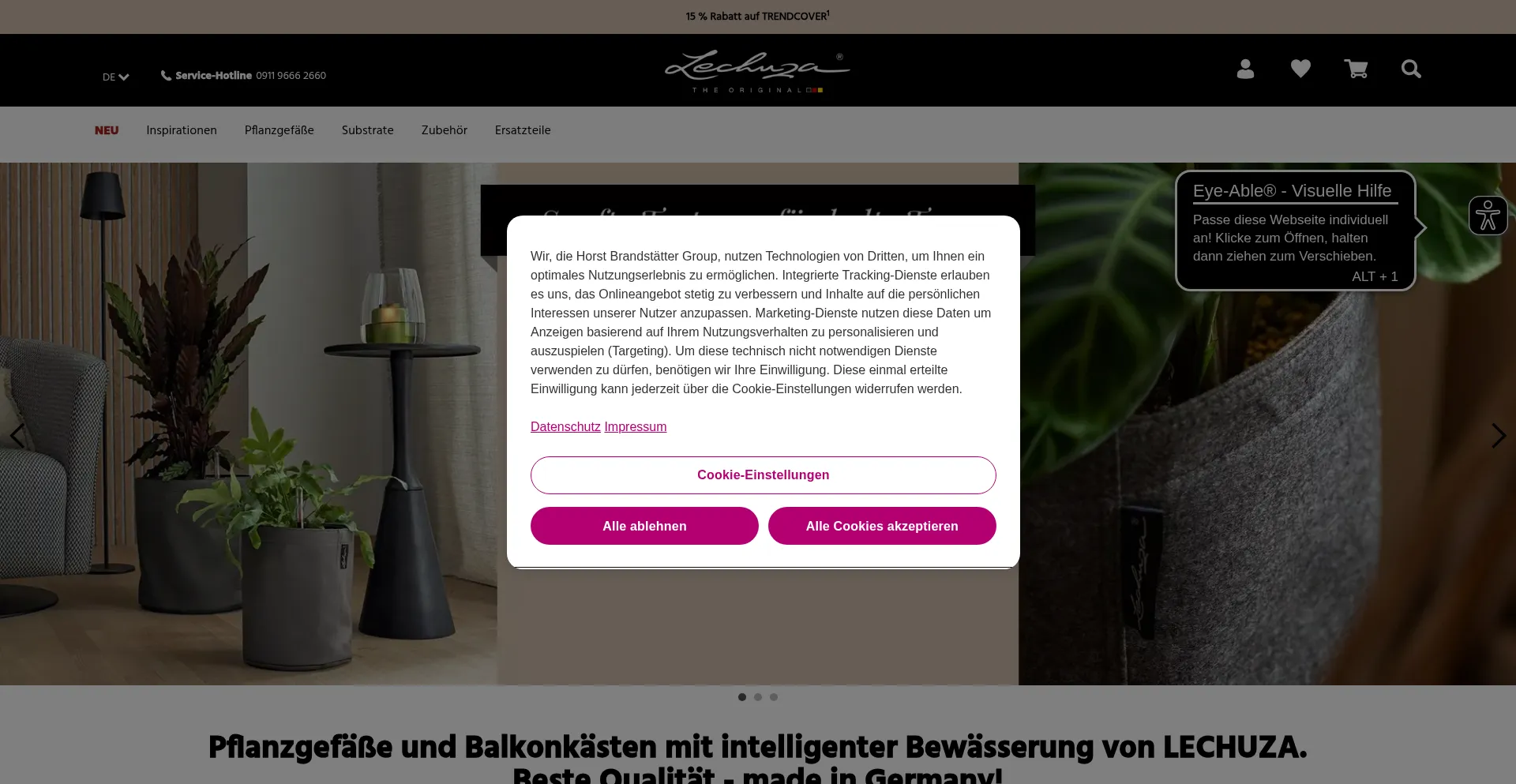 The website implements cookie consent mechanisms in compliance with privacy regulations such as GDPR or CCPA. This demonstrates that lechuza.de adheres to data protection standards and provides users with control over personal data collection practices.