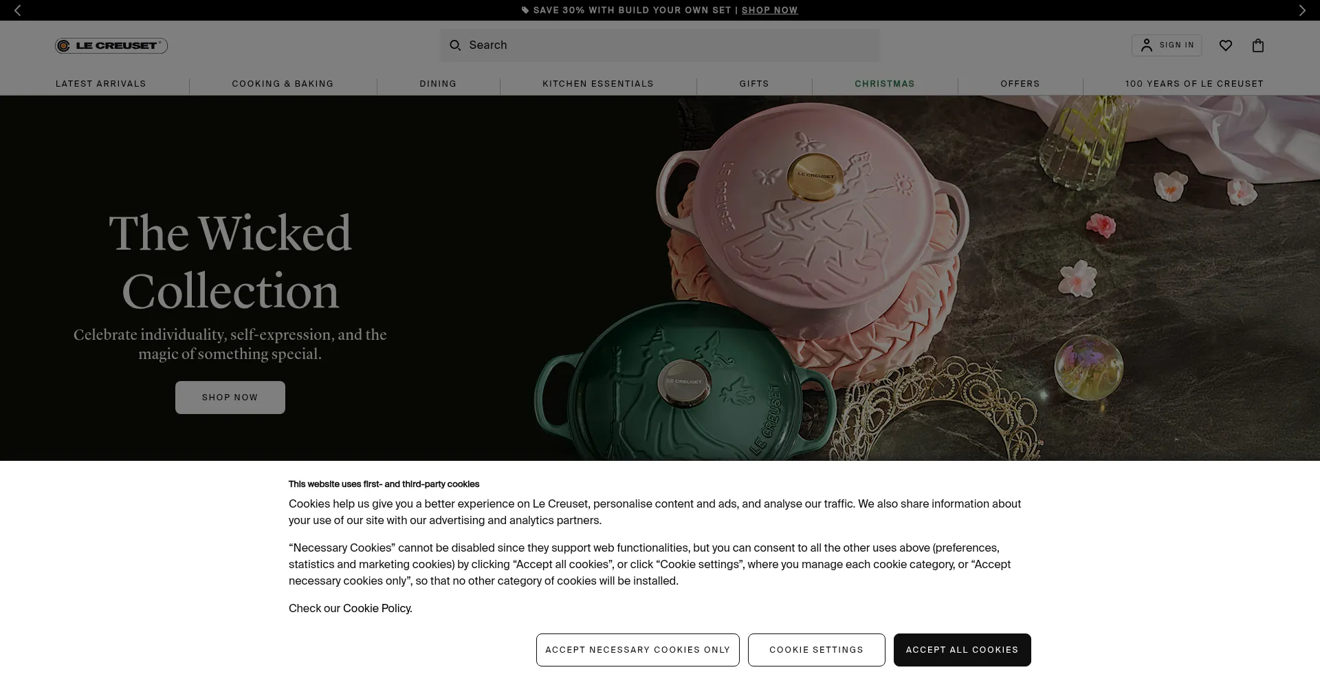 The website implements cookie consent mechanisms in compliance with privacy regulations such as GDPR or CCPA. This demonstrates that lecreuset.co.uk adheres to data protection standards and provides users with control over personal data collection practices.