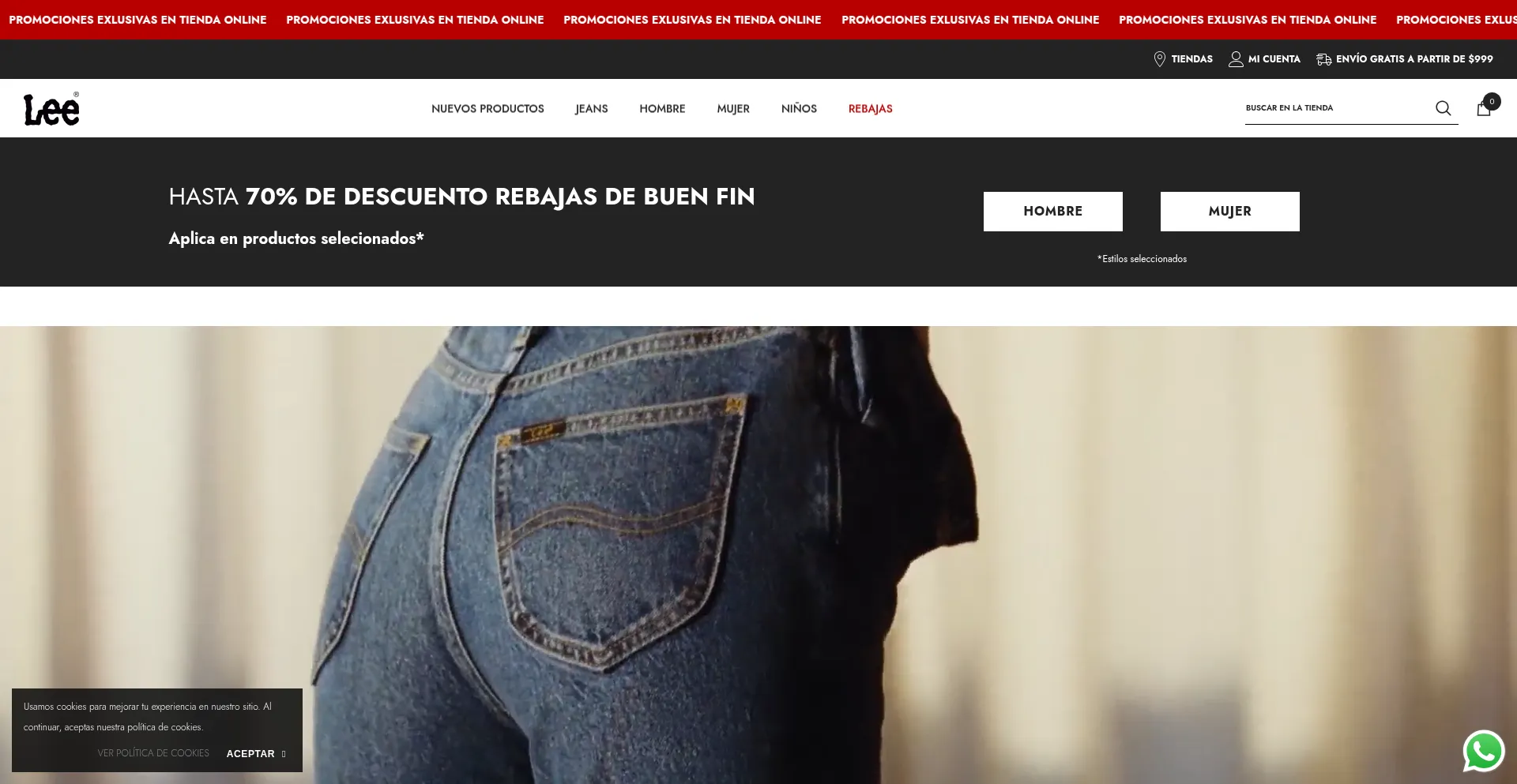The website implements cookie consent mechanisms in compliance with privacy regulations such as GDPR or CCPA. This demonstrates that leejeans.com.mx adheres to data protection standards and provides users with control over personal data collection practices.