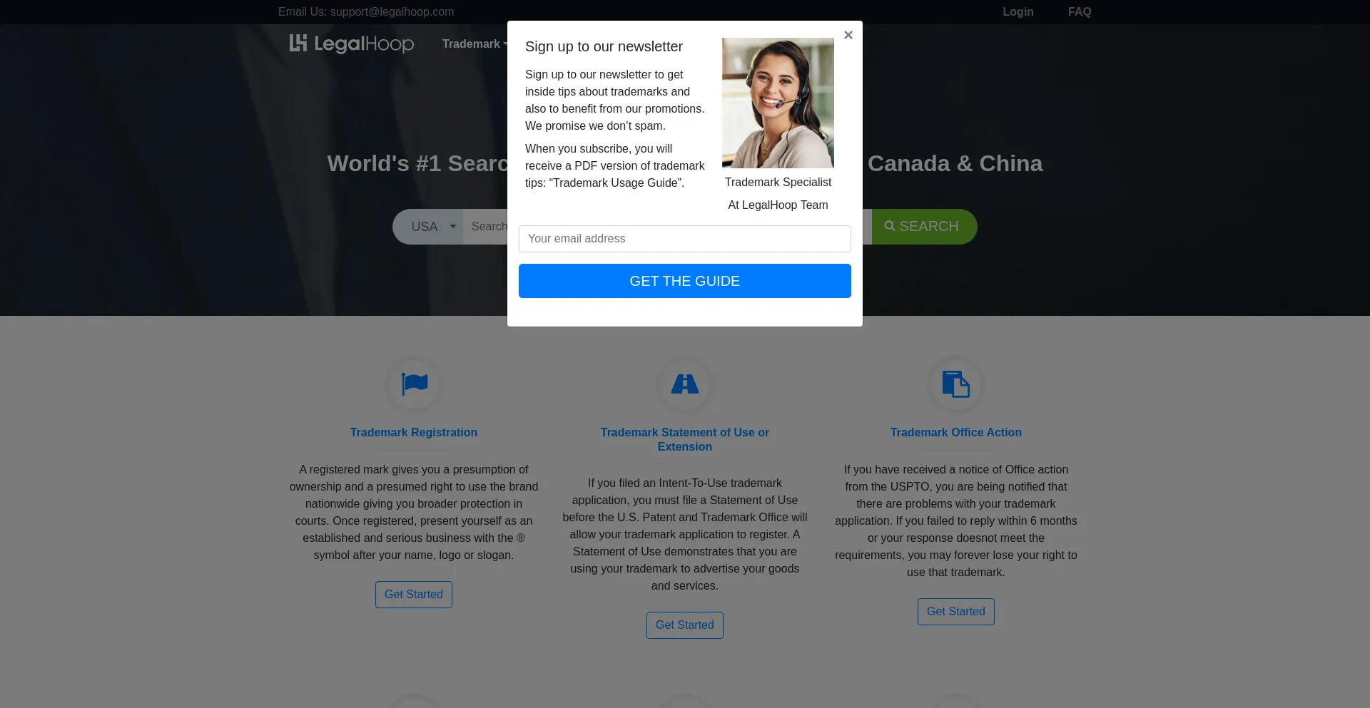 LegalHoop provides an online trademark search tool, and is the largest free trademark search site. LegalHoop helps you register a trademark online in the United States, Canada,...