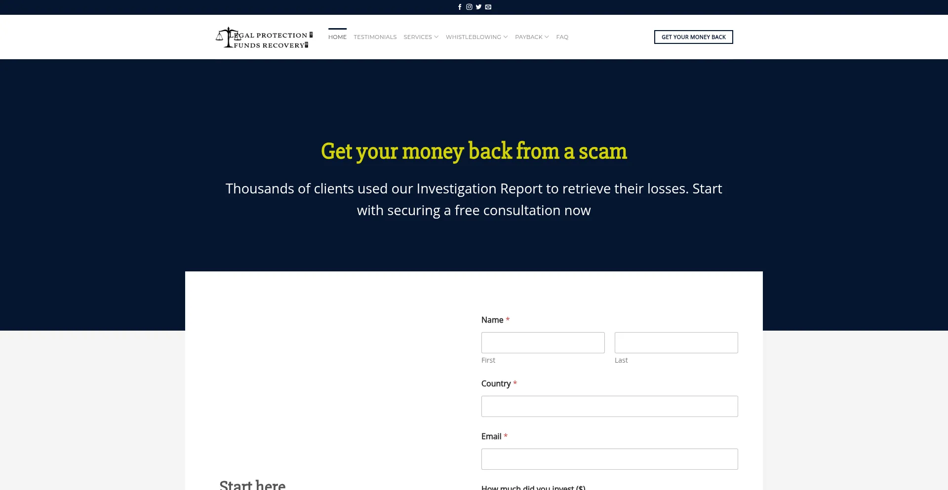 The website legalprotectionfundsrecovery.com advertises fund recovery services for lost or stolen assets. While some operate on contingency fee structures, others may require upfront payments, which can indicate fraudulent operations. Verify credentials and regulatory compliance before engaging such services.