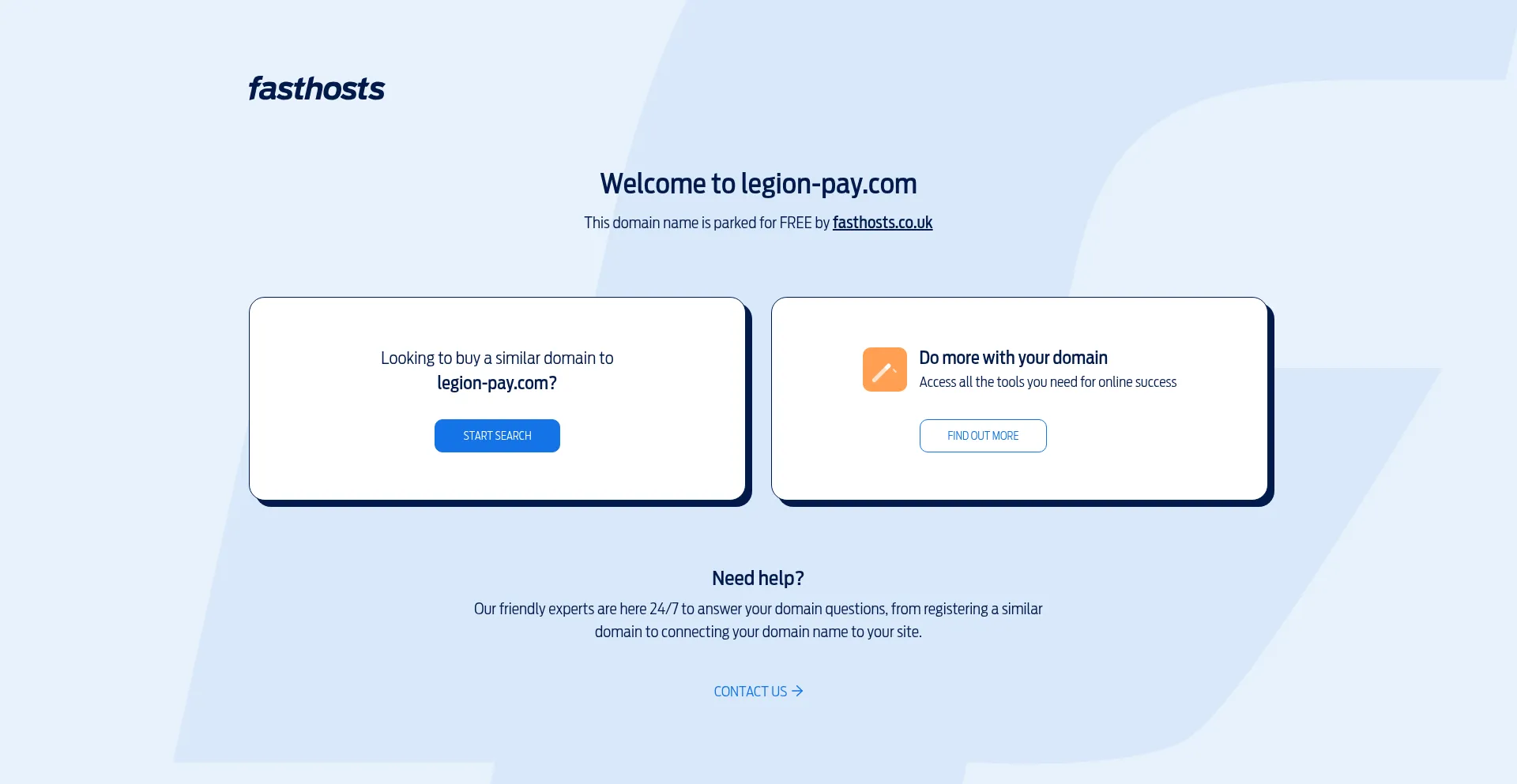 This domain (legion-pay.com) is registered but currently inactive, displaying placeholder content such as advertisements or domain sale notifications. Parked domains are commonly held for future development, resale purposes, or revenue generation through advertising networks, but lack active web services or content.