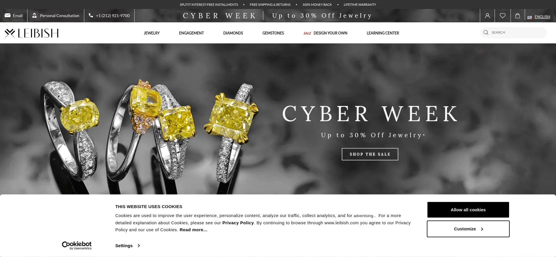 The website implements cookie consent mechanisms in compliance with privacy regulations such as GDPR or CCPA. This demonstrates that leibish.com adheres to data protection standards and provides users with control over personal data collection practices.
