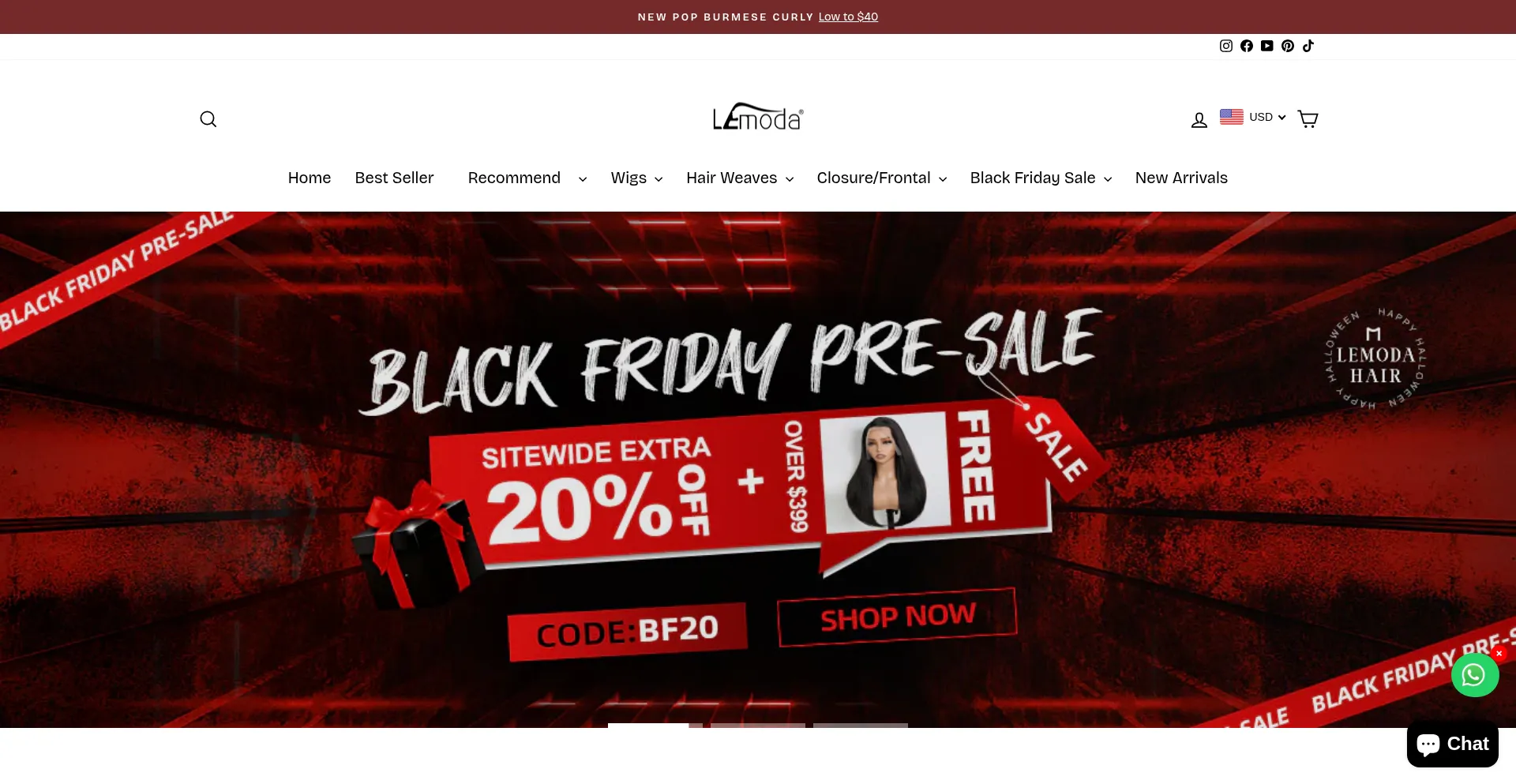 Our analyzer determines that website lemodahair.com is using Shopify CMS. Shopify is a popular e-commerce platform, powering around 4.4% of websites globally.